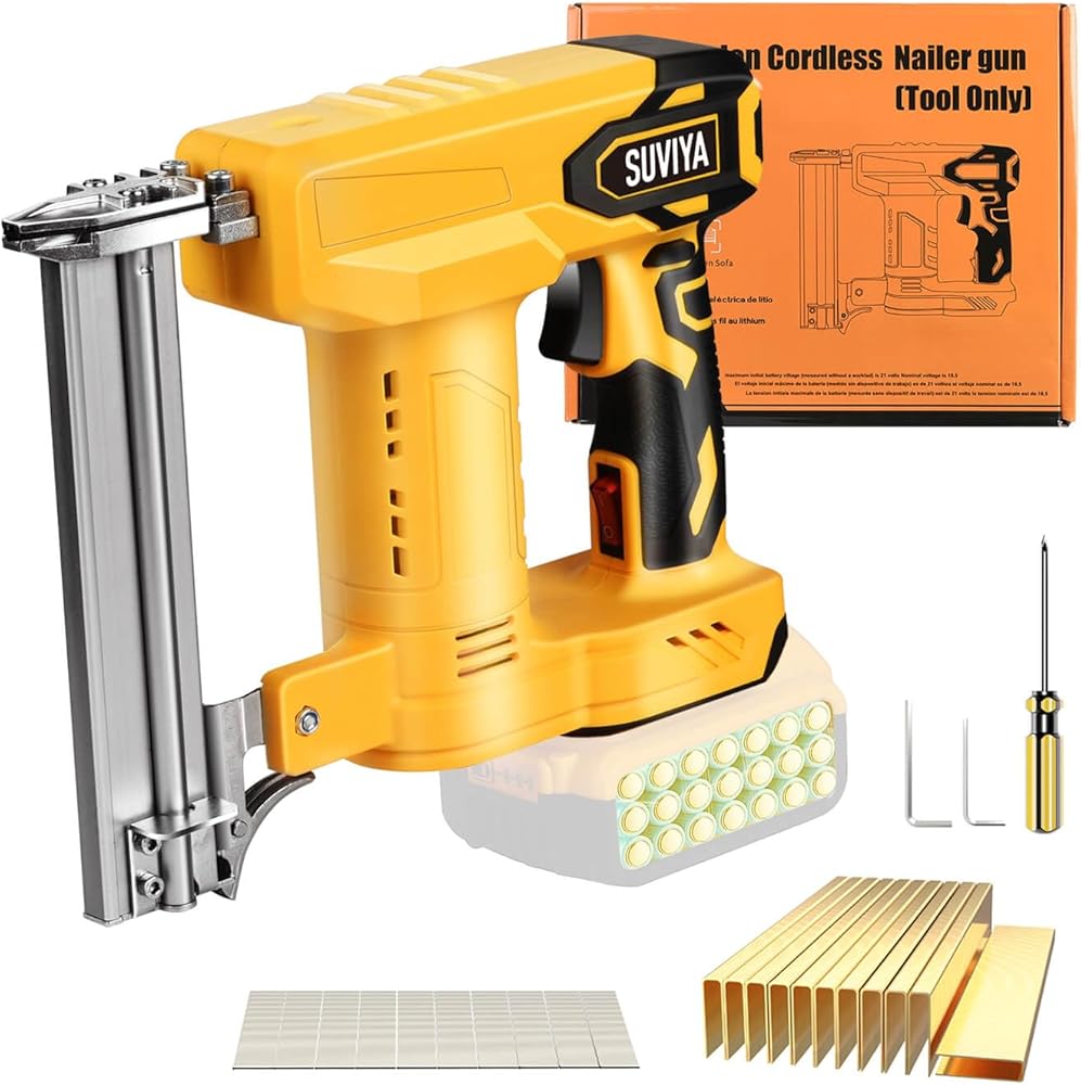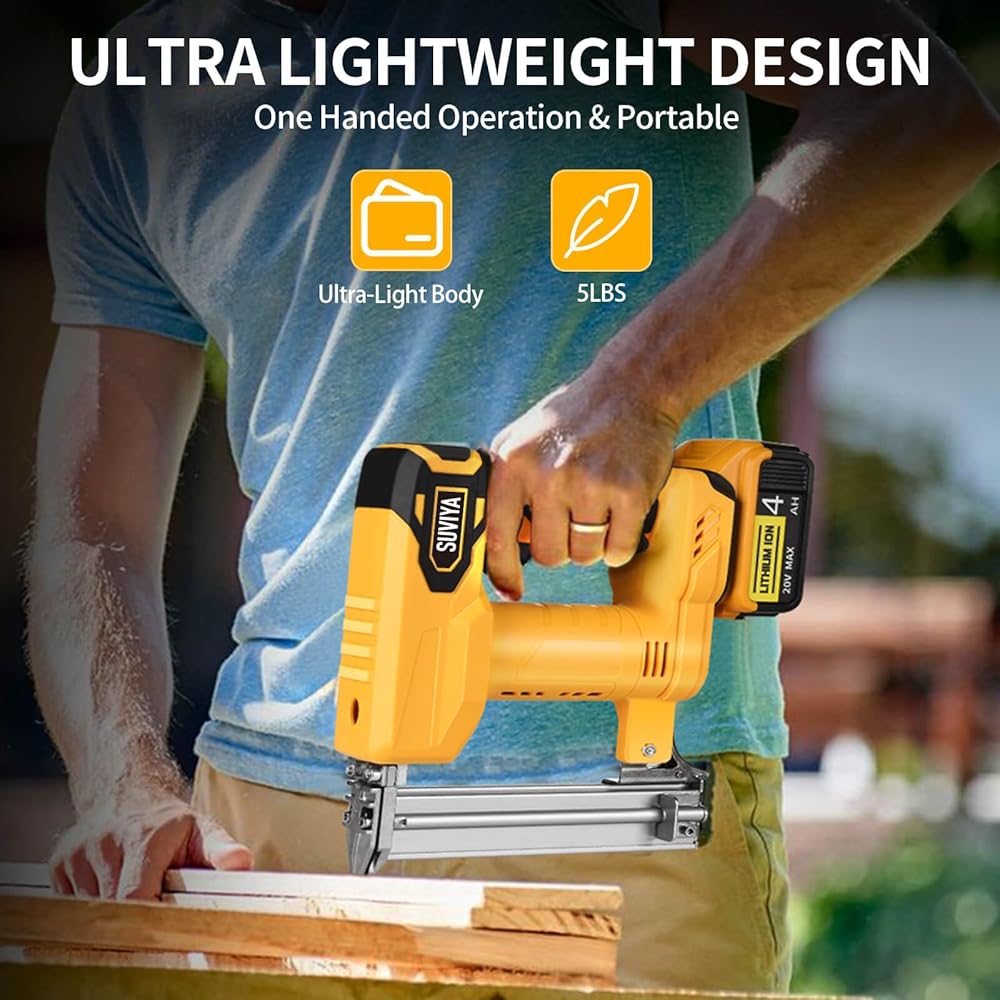 Lightweight and User-Friendly Design -Suviya Power Cordless nail gun ounrestricted mobility. Features a tool-free jam release ,Weighing just 5.00 pounds .