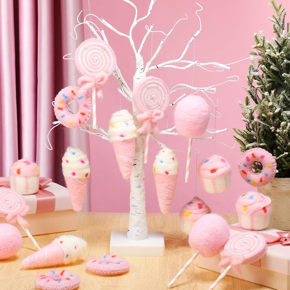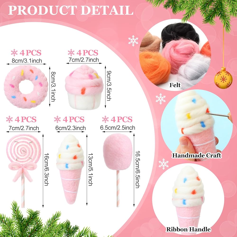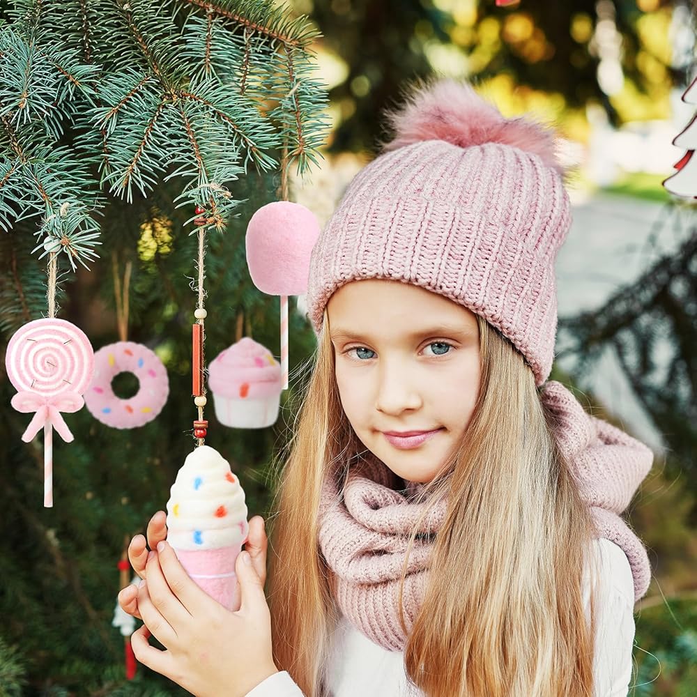 Package Contains: You will receive 20 pieces holiday dessert ornaments set, includes 4 felt lollipops, 4 felt ice creams, 4 felt marshmallows, 4 felt cupcakes and 4 felt donuts, sufficient quantity and rich styles to meet the decoration of different occasions, adding warm colors and childlike atmosphere to your holiday ornaments.