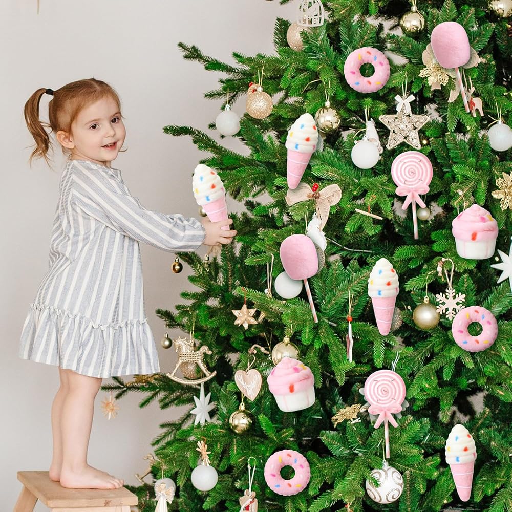 Exquisite Design: this Christmas dessert ornaments set stands out with its exquisite design and exquisite craftsmanship. There are 20 styles in total, and the patterns include lollipops, donuts, ice cream, cupcakes and marshmallows. Each decoration is detailed and colorful. It can not only add warmth and joy to your holiday ornaments, but also is an ideal holiday gift choice.