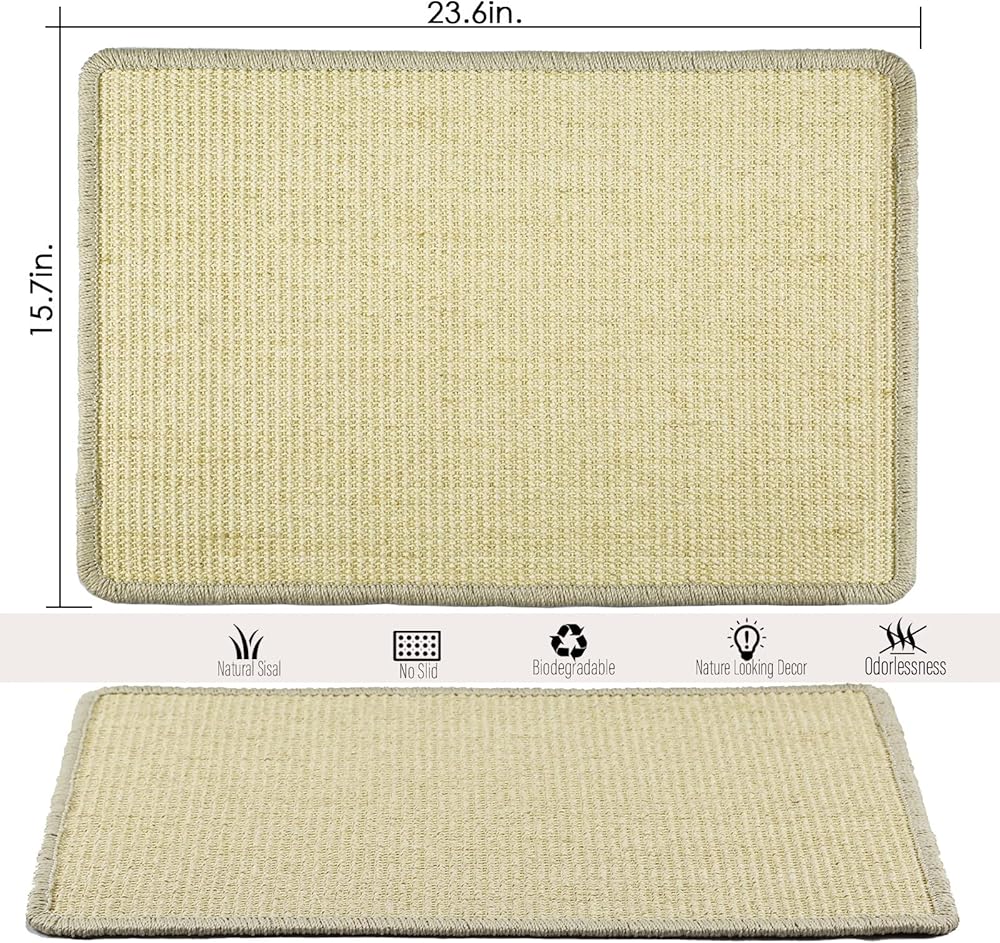 Pethave Cat Scratcher Mat, 23.6x15.7” Natural Sisal Cat Scratching Mat with Velcro Tape,Stick on Floor and Wall Cat Scratch Pad Rug, Horizontal Cat Scratch Mat Protect Carpet and Sofa (Natural Color)