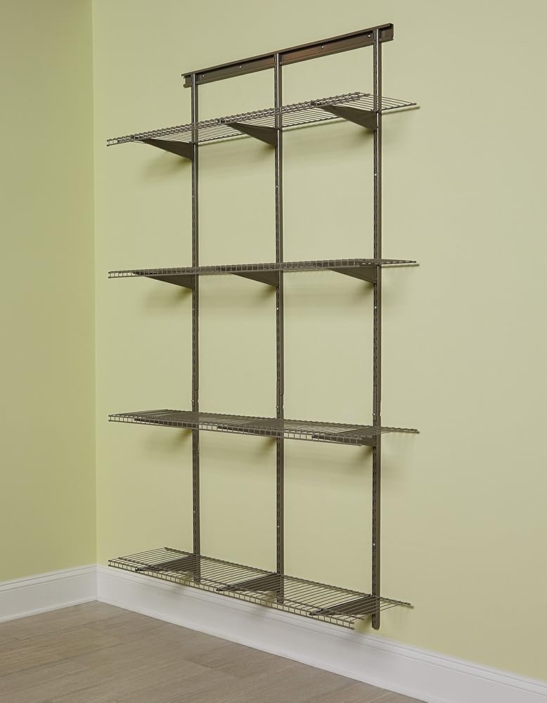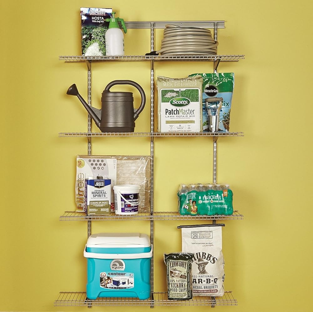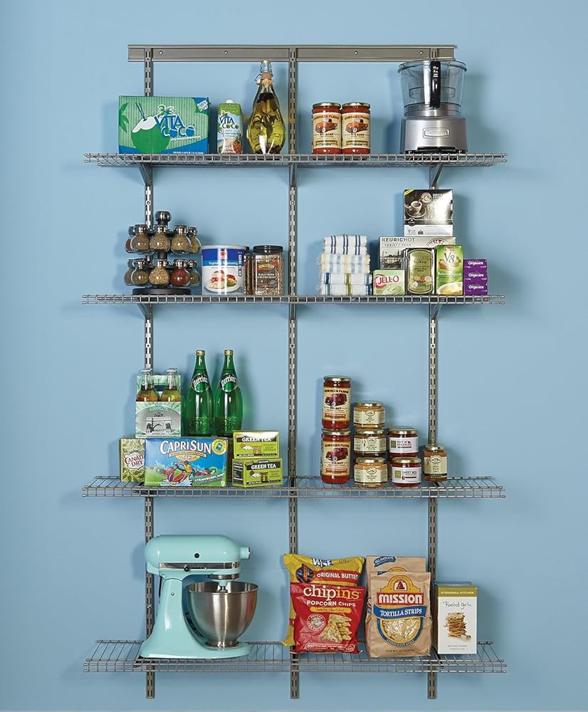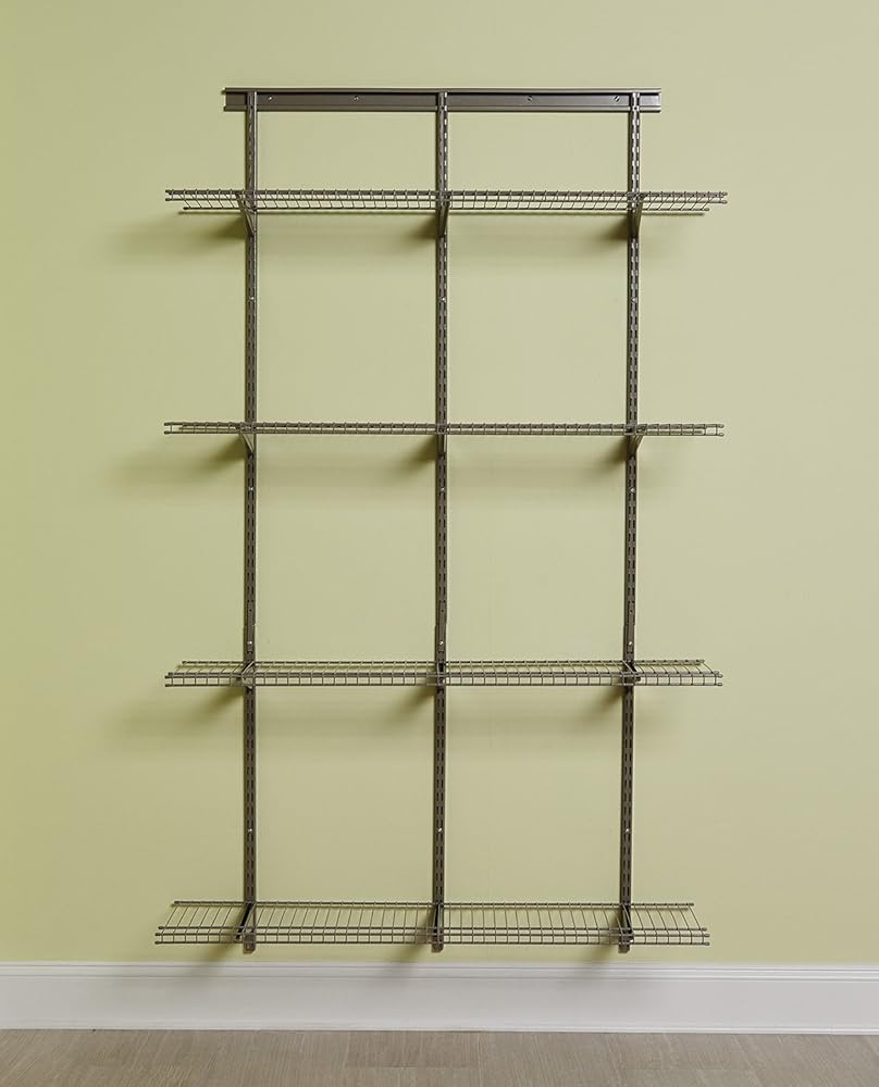 ClosetMaid heavy duty shelving like this 4 ft. Wide ShelfTrack adjustable utility organizer kit is perfect for utility rooms, garages, kitchens and more. Plus, the ClosetMaid ShelfTrack system allows you to move shelves up and down to different positions for ease of adjustability. This all-in-one kitted solution with heavy duty steel construction will create a fully adjustable space anywhere in your home