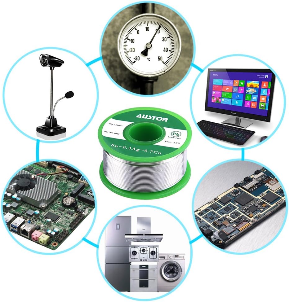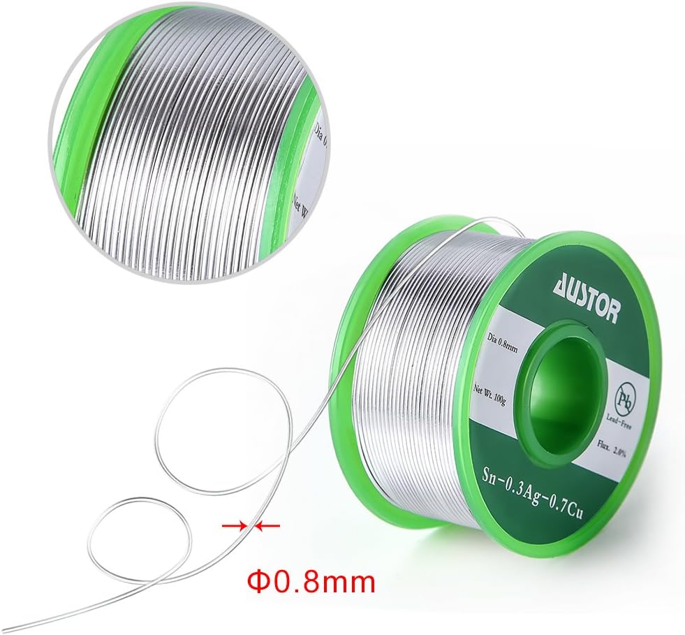 AUSTOR 0.8mm Lead Free Solder Wire with Rosin Core, 100g