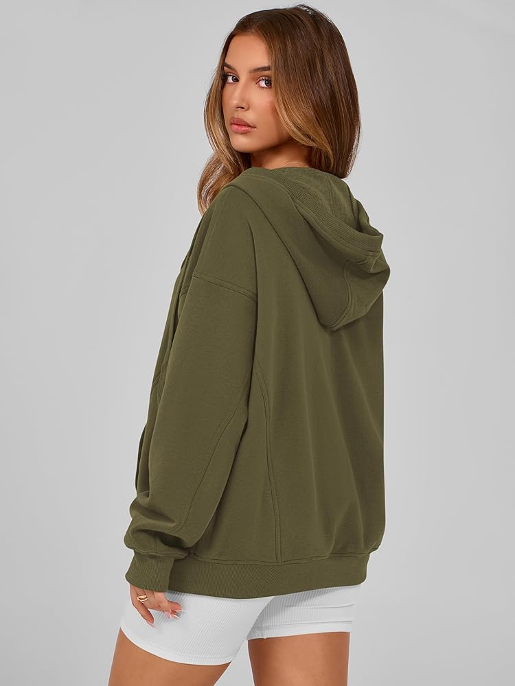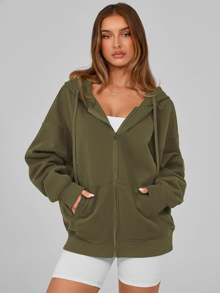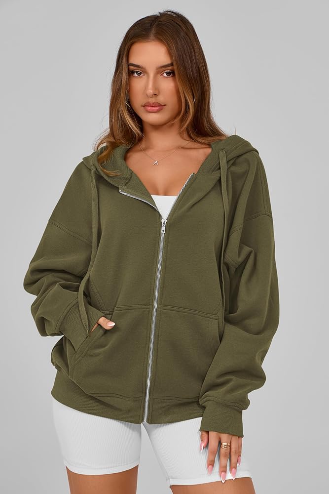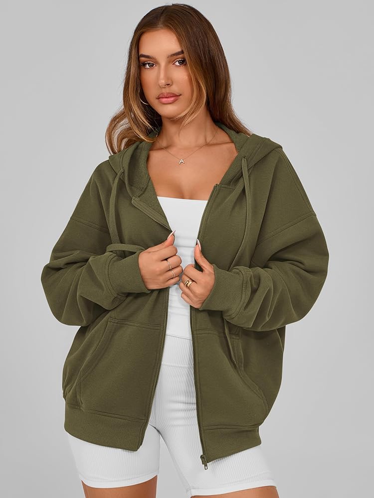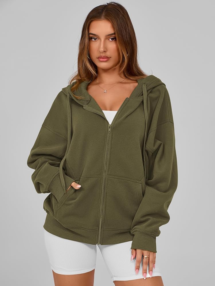 Features: Zipper hoodies for women,oversized hoodies for women,long sleeve sweatshirts for women,womens fleece jacket,women's sweatshirts with pockets,fall jackets for women 2024,winter clothes for women,drop shoulder,drawstring,ribbed cuffs and hem