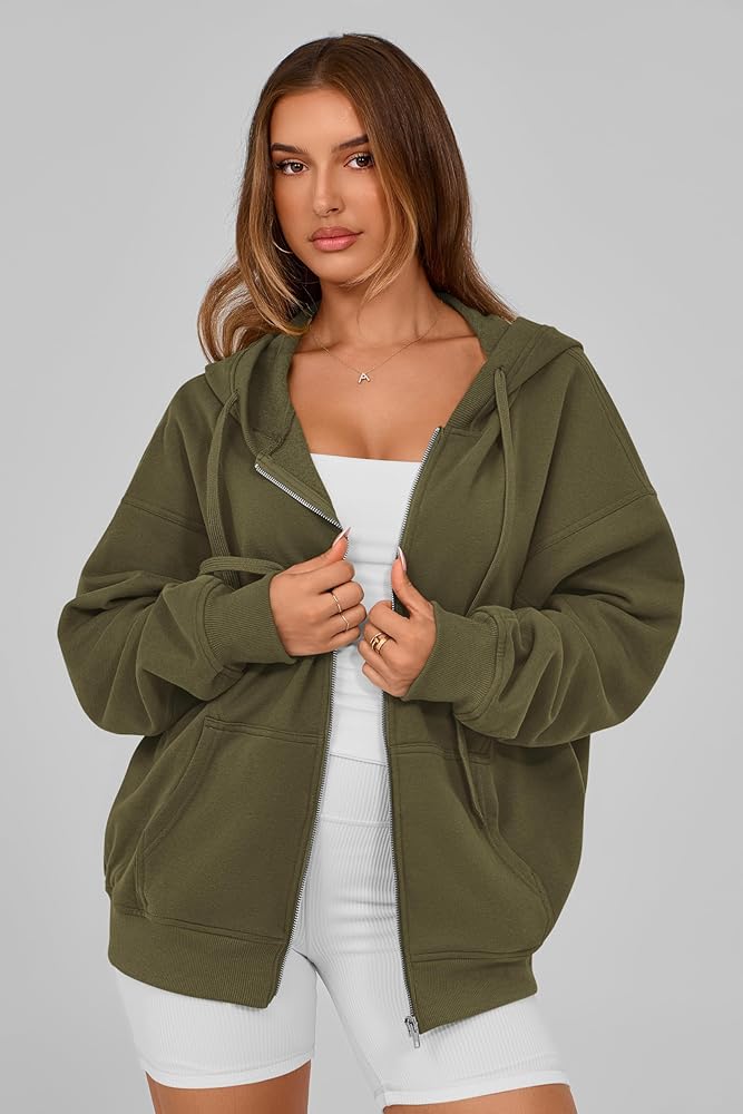 Colors: White sweatshirt with pockets, army green fleece jacket women, khaki hoodies for women trendy, grey blue hoodie women, navy zip up hoodies for women, black jacket women casual