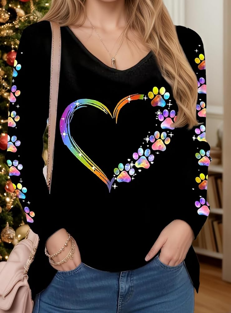 Rhinestone Heart V Neck Shirts Womens Funny Valentine's Day T Shirt Love Heart Graphic Casual Long Sleeve Tees Shirt Tops