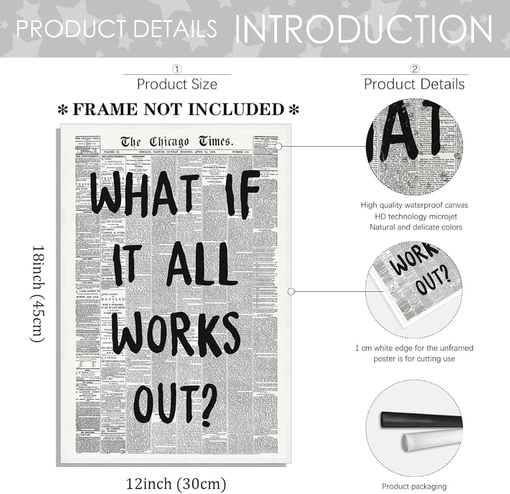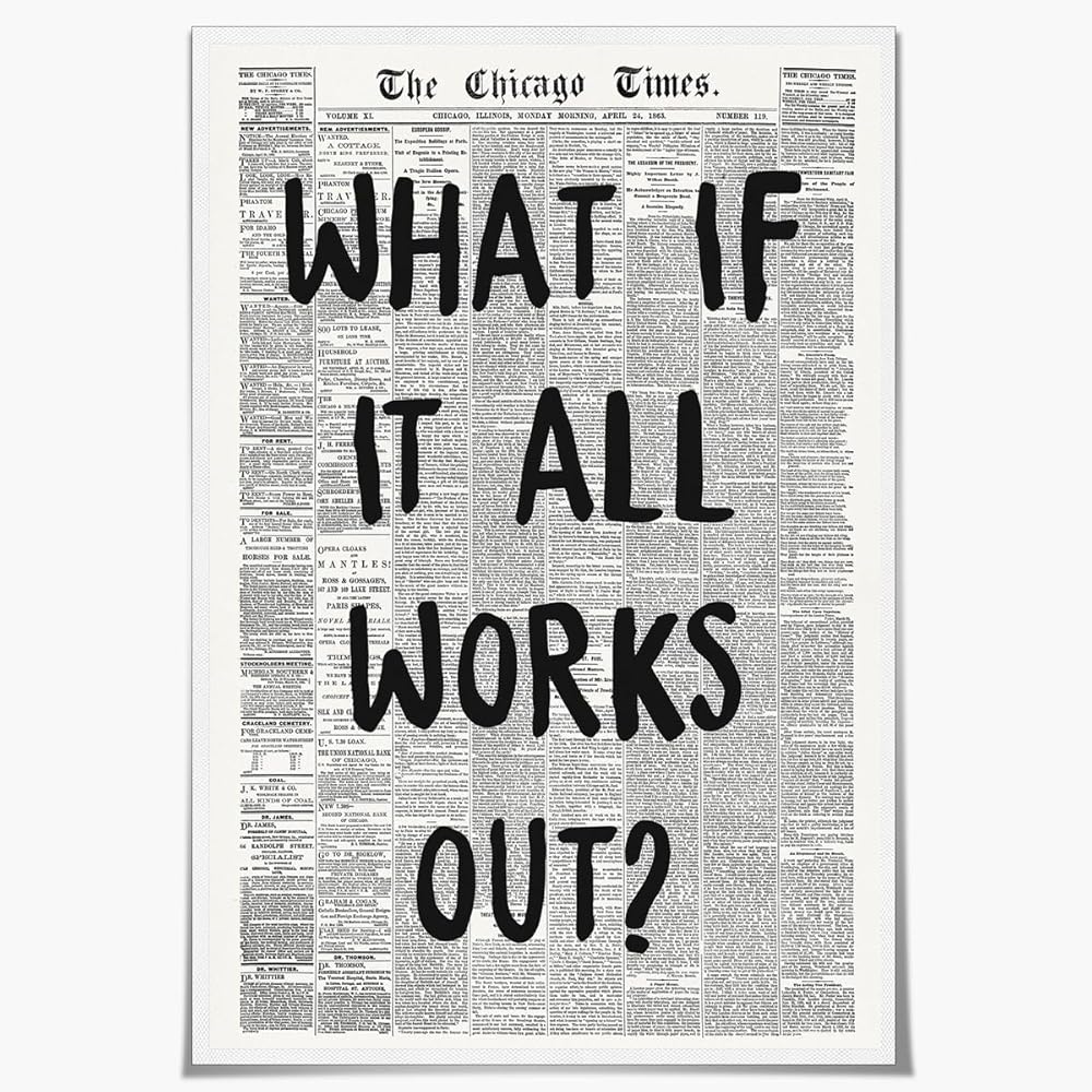 Sufeasdf Retro Newspaper Posters Positive Affirming Quotes Posters Black and White Wall Art Painting What If It All Works Out Room Aesthetic Poster Apartment Bedroom Decor16x24inch Unframed
