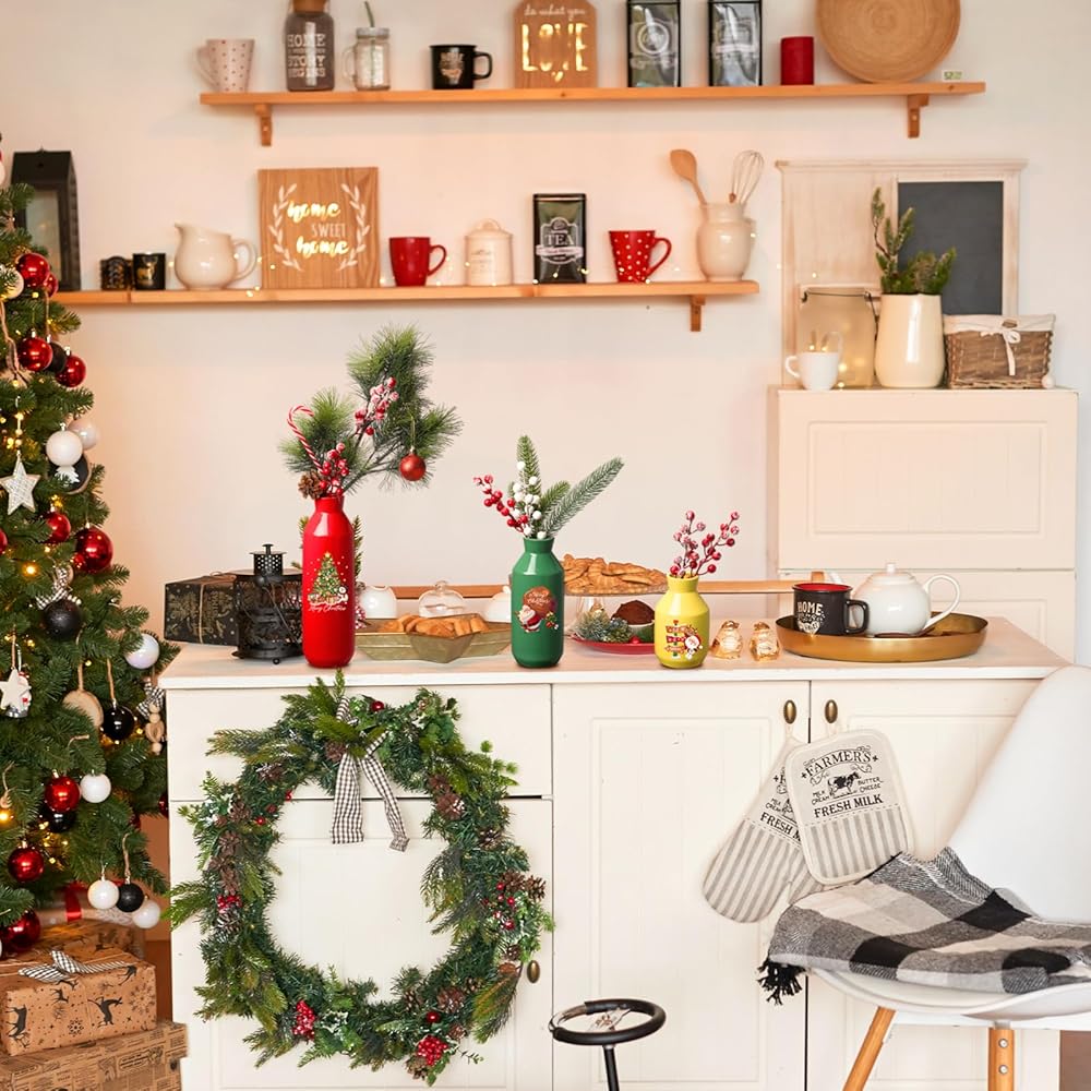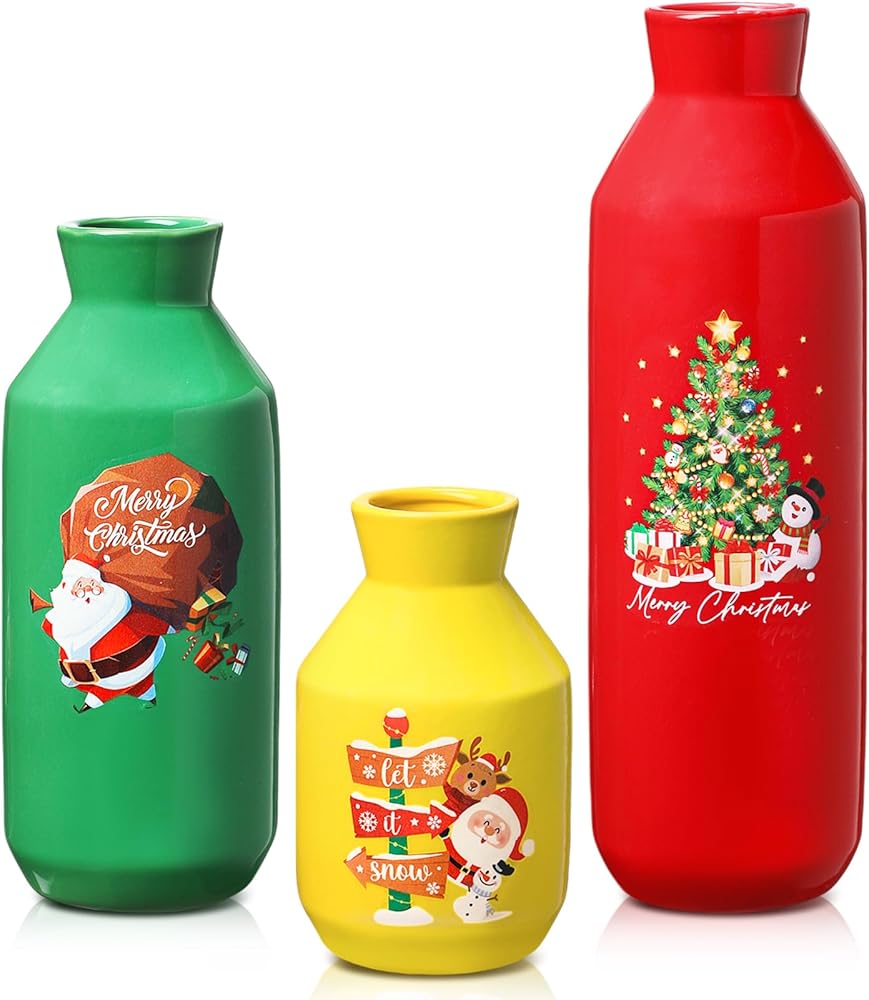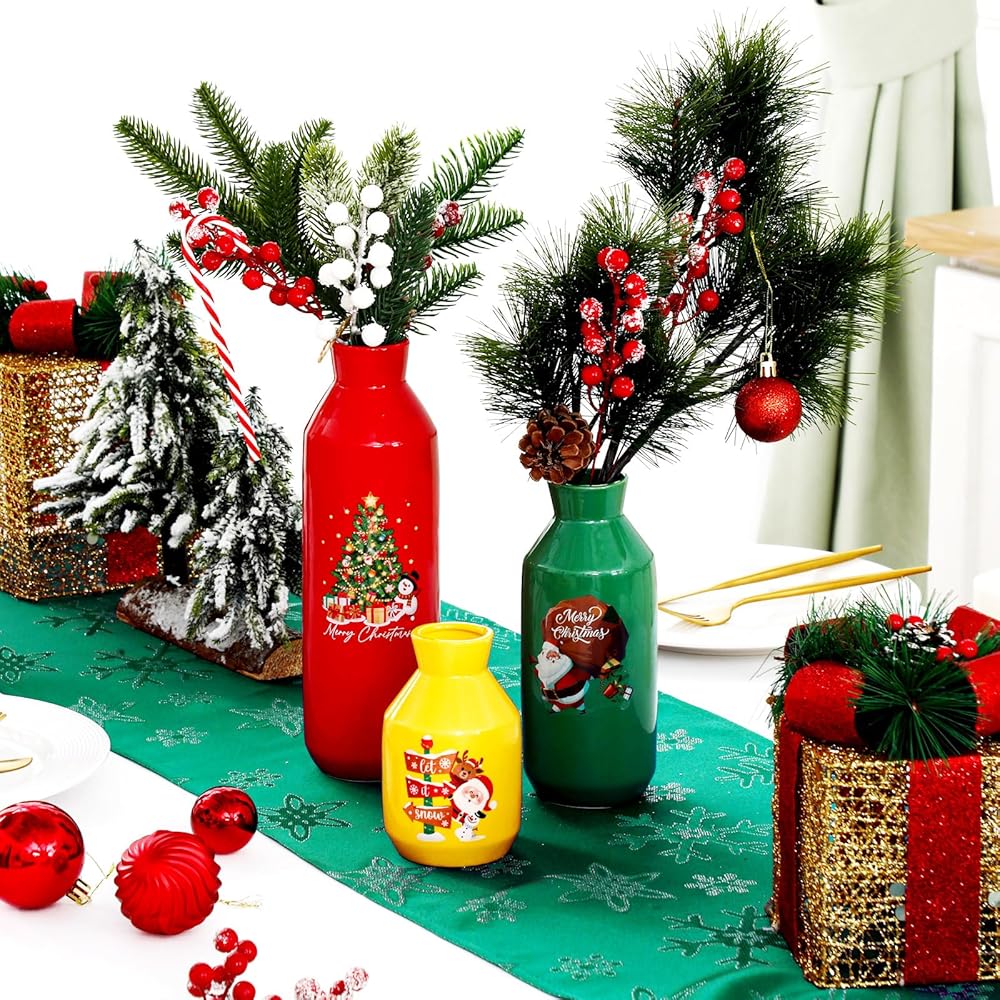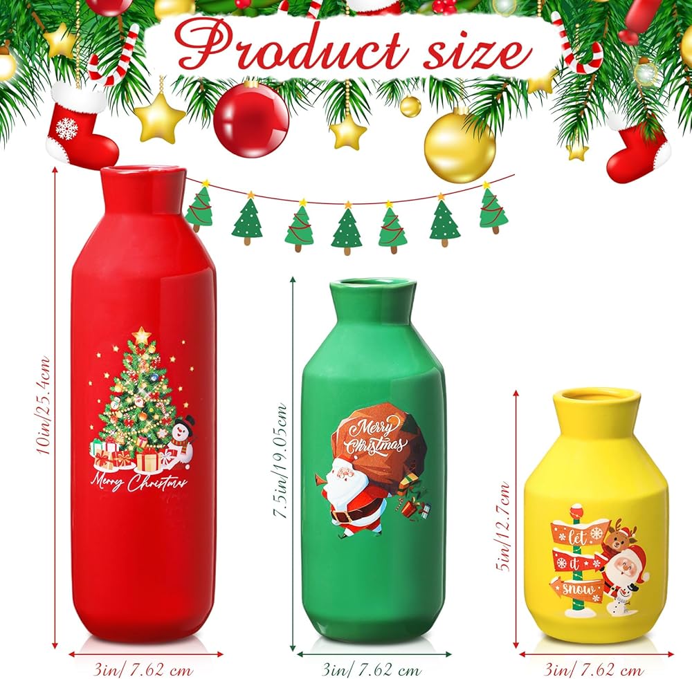 Adorned with classic Christmas elements such as Christmas trees and Santa Claus, the colorful ceramic flower vase stands out. Enhanced by vibrant colors and a wreath, these vases illuminate your indoor Christmas decor.