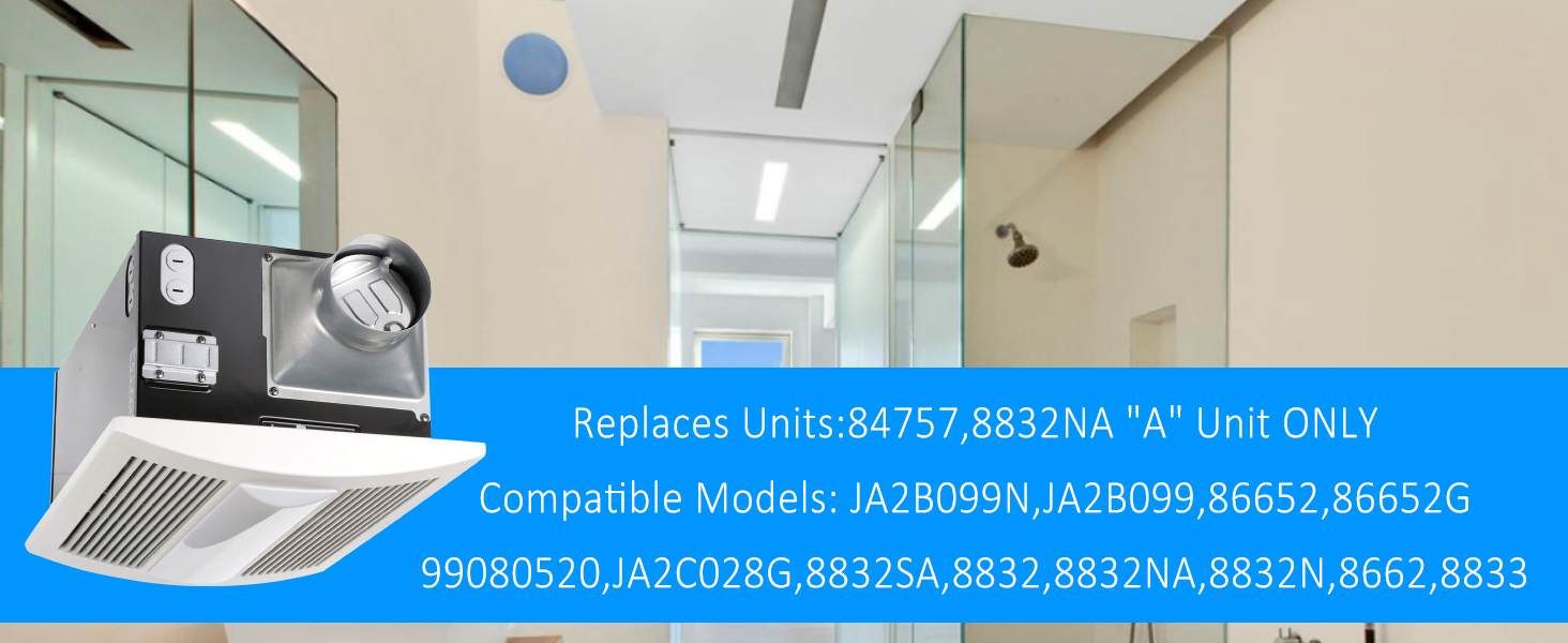 Applicable model: Blower motor compatible with Nutone/ Broan: JA2B099N replacement for: 8832NA A , JA2B099N, JA2B099, 86652, 8662, 84757, 86652G, 99080520, JA2C028G, 8832SA, 8833