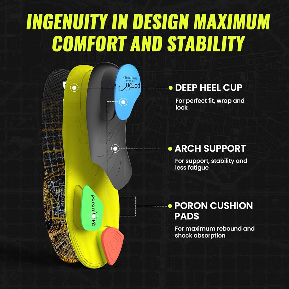 👣 Premium Cushioning Material: Our cushioning pads are made from internationally renowned PORON polyurethane foam, known for its high density and finely uniform cellular structure. This unique cellular structure resists compression deformation and can recover at least 98% of its original shape, ensuring a snug fit and excellent cushioning