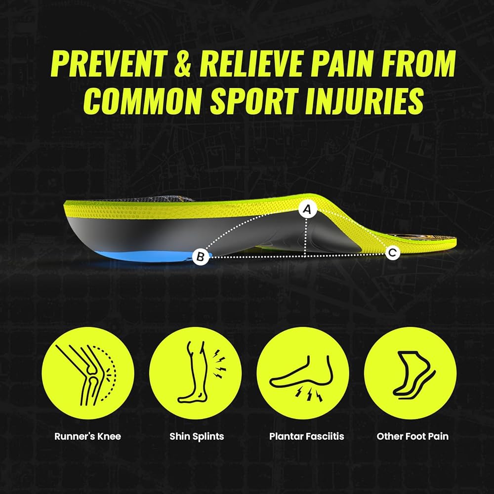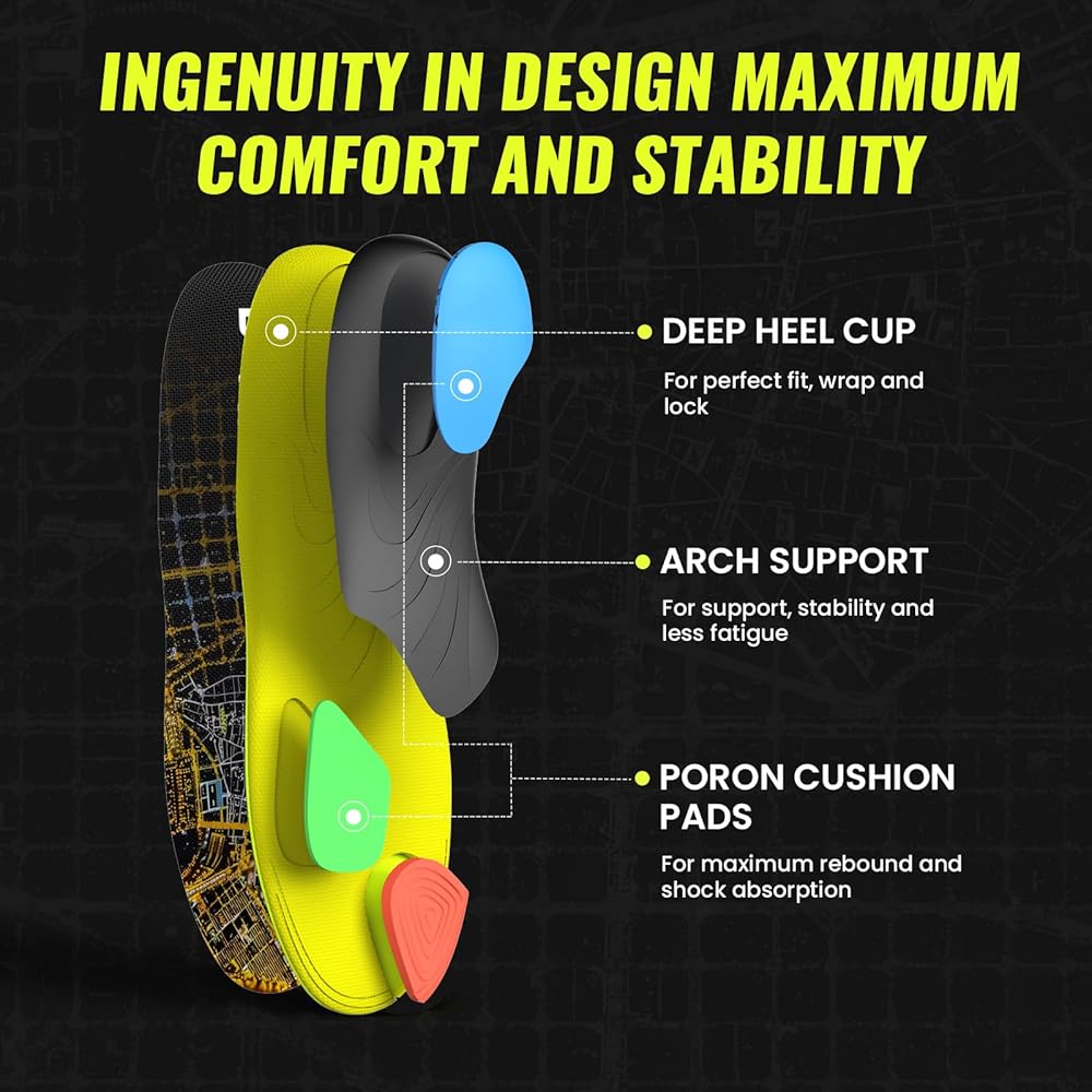 👣 Deep Heel Cup Design: Our running insoles feature a 0.4-inch deep heel cup that perfectly contours to your heel, minimizing movement and friction during running. This helps prevent blisters and heel pain often experienced after a run
