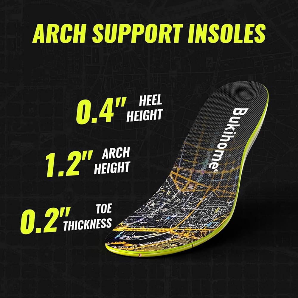 👣 Superior Arch Support: The Bukihome orthotics insoles feature TPU material in the arch support section, offering a perfect balance of hardness and flexibility. This design effectively reduces the energy transmitted to joints and muscles during high-intensity activities like running, minimizing fatigue and making walking easier
