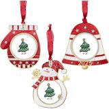 GUOER 3PCS Christmas Tree Ornaments Set Picture Frame Ornament Holiday Keepsake Gift Home Decor Christmas Decorations Xmas Gifts Pendant with 2” Photo Frame Insert (Snowman Set 2024)