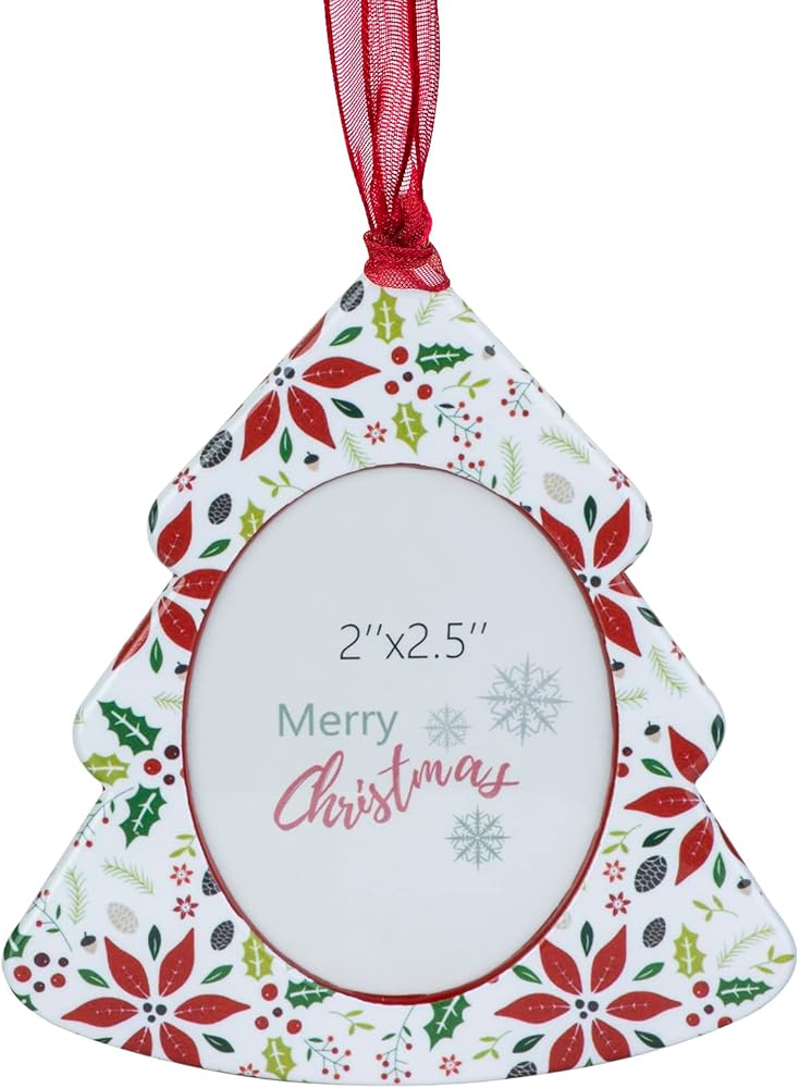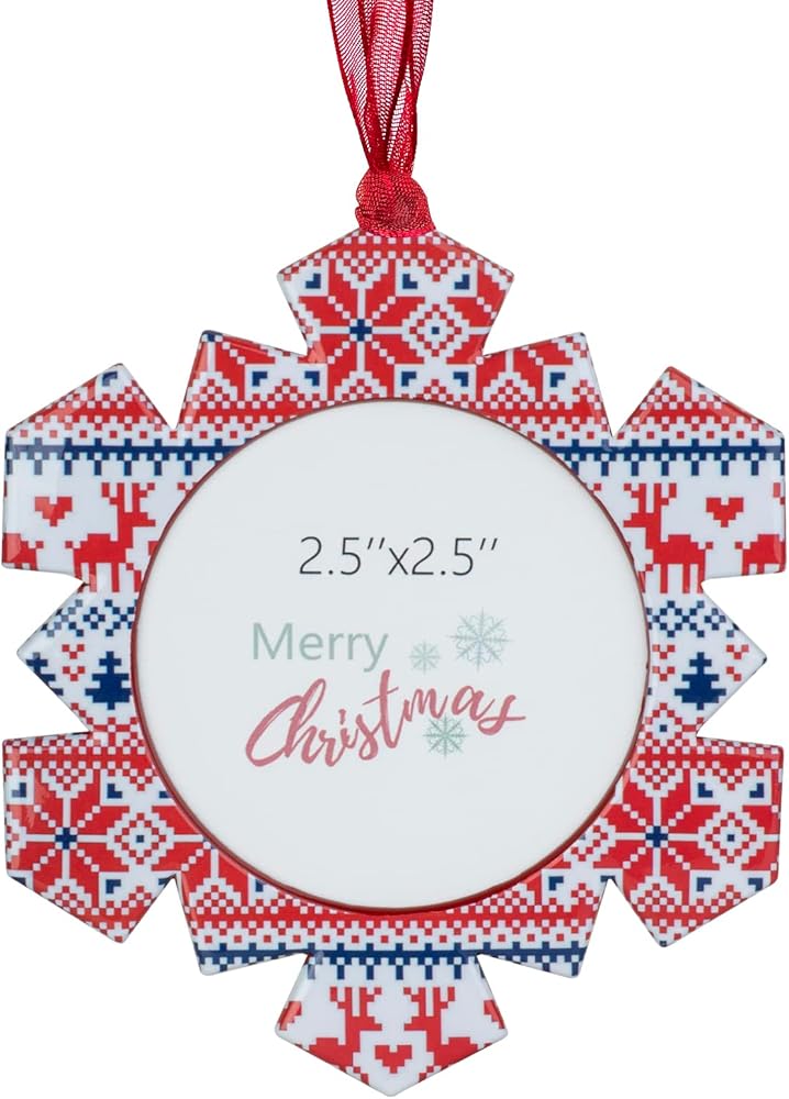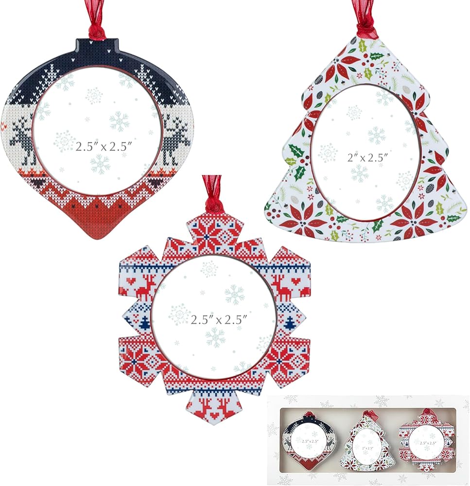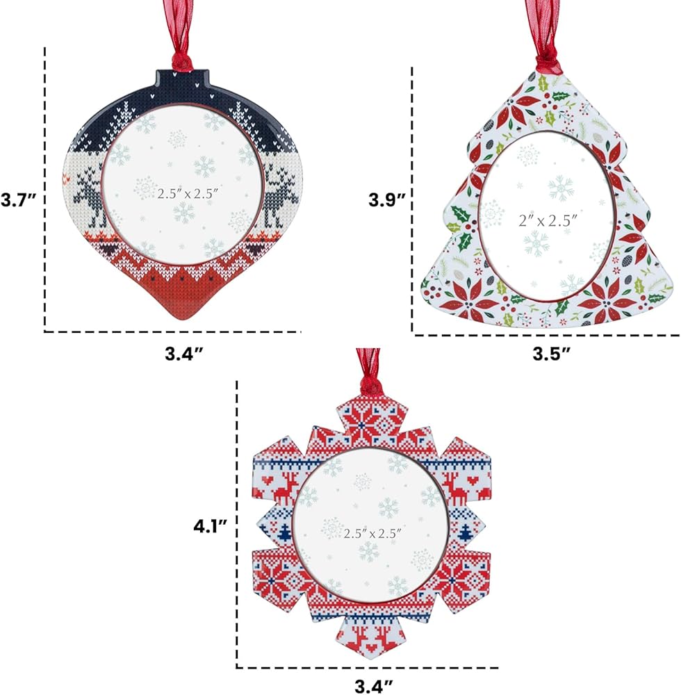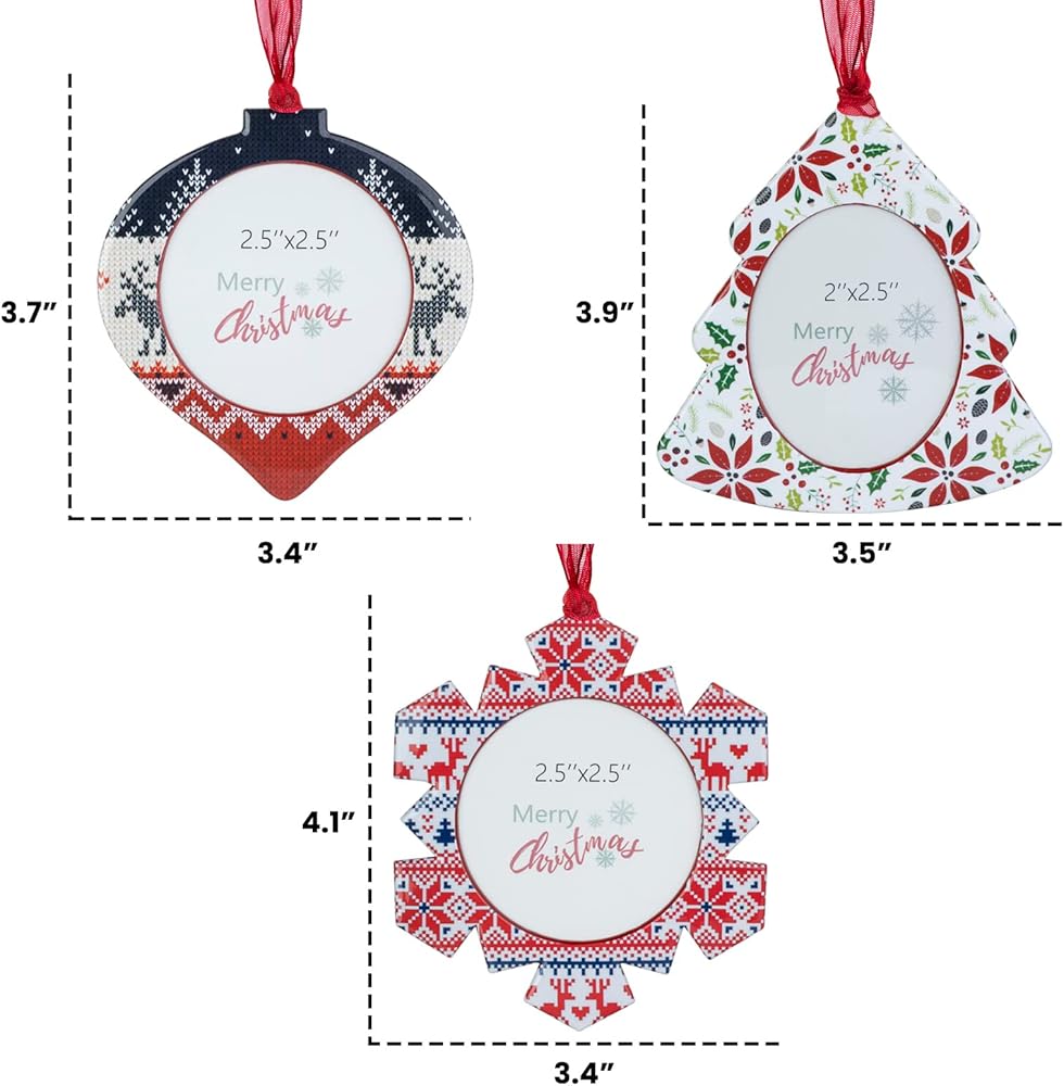 GUOER 3PCS Christmas Tree Snowflake Picture Frame Ornaments Set Holiday Keepsake Gift Home Decor Christmas Decorations Xmas Gifts Pendant with 2.5" Photo Frame Insert (Colorful)