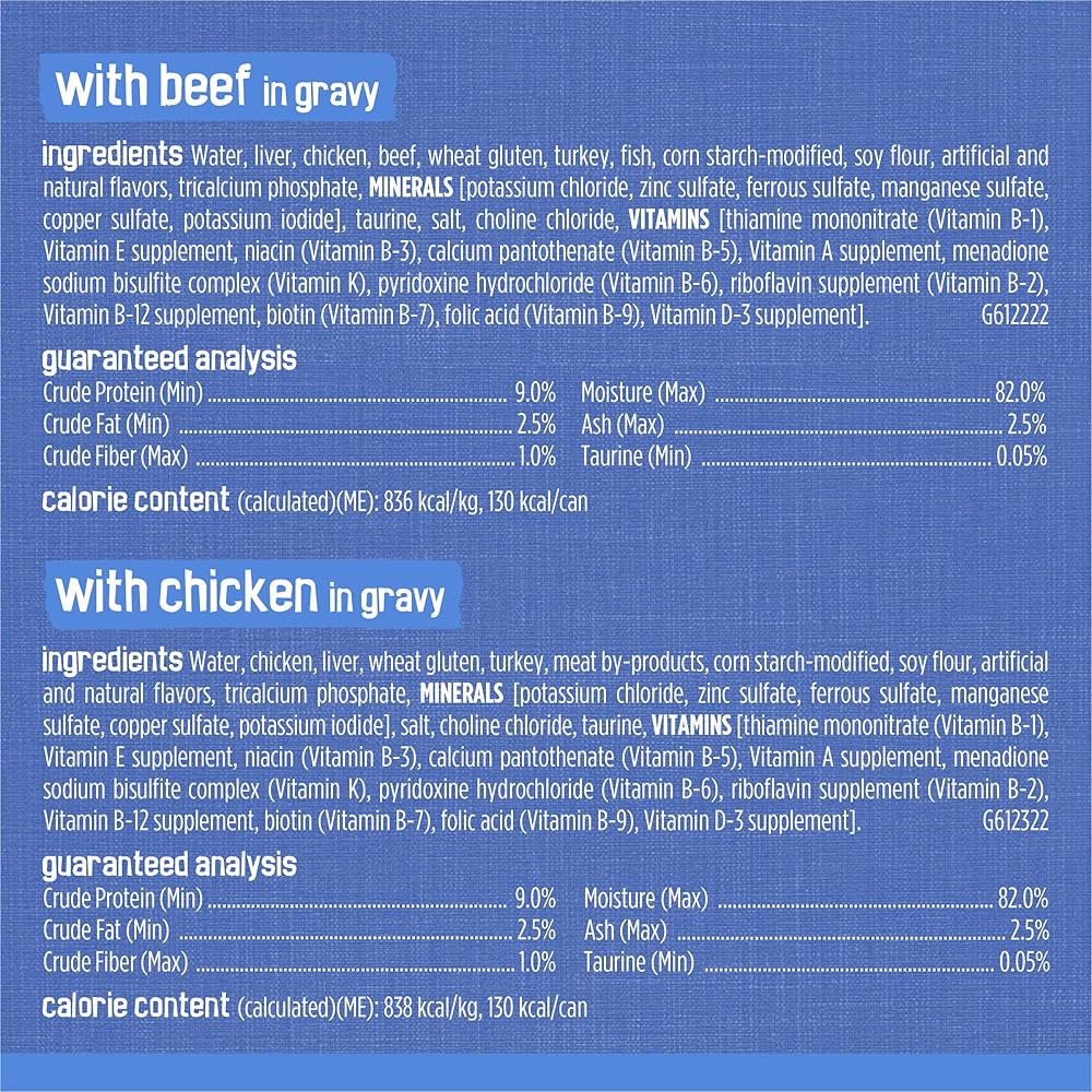 Offer up paw-pleasing flavor with this Purina Friskies Shreds wet cat food variety pack. Each of the three mouthwatering recipes in this wet cat food collection features real beef or poultry, along with a savory, thick gravy that piles on extra yum in every bite. The thinly shredded pieces deliver a tender, nibble-worthy texture your cat can't say no to. These tasty recipes are made with high-quality ingredients, so you can feel satisfied she's getting wholesome, good-for-her meals that also provide 100 percent complete and balanced nutrition. Plus, every serving of this wet cat food contains essential vitamins and minerals to help support your cat's overall health and wellness. With so much scrumptious goodness packed into every can, this Purina Friskies wet cat food variety pack is sure to have your cat thanking you every time you fill her dish. Get the delicious food your cat deserves with just a few clicks when you order from Amazon.com.