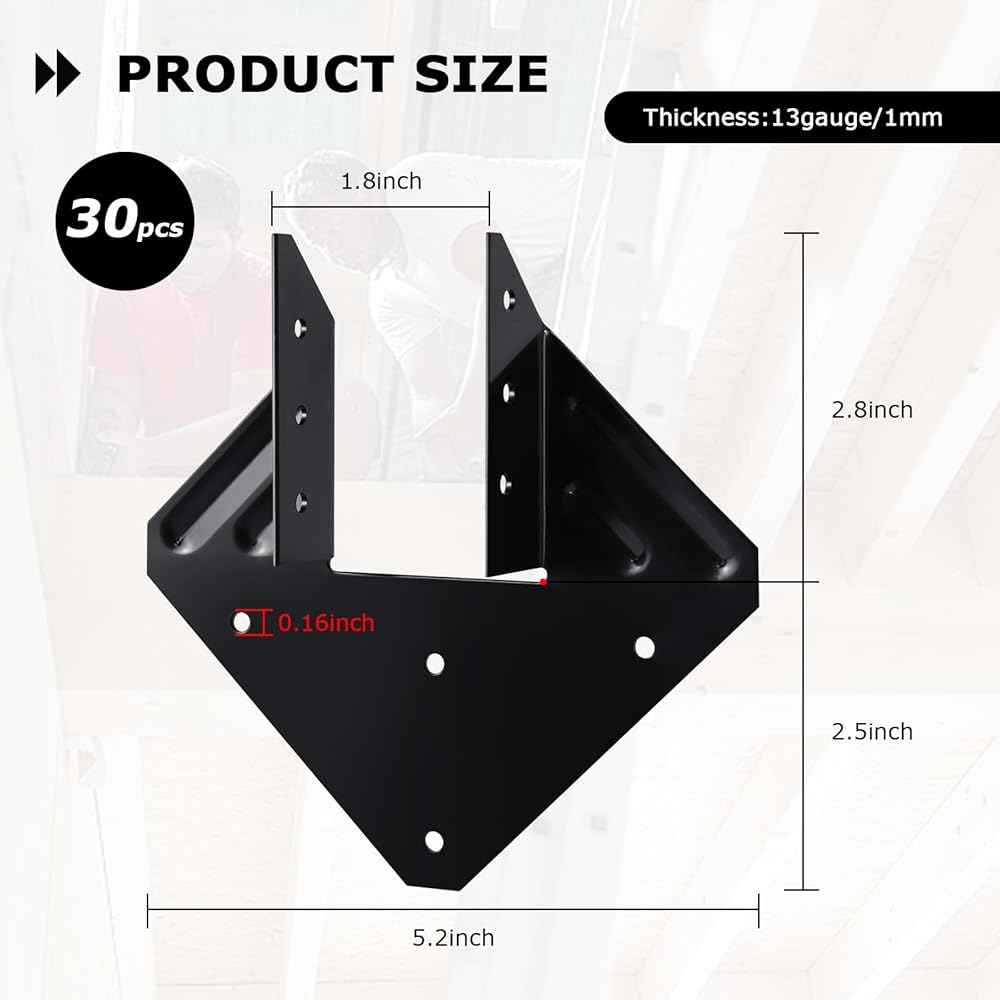 Convenient and easy to install: With the multi-hole pre-punched design, you only need to fix the joist brackets to the joists or rafters where they should be fixed, and then tighten the screws in the holes to complete the installation, saving time and energy