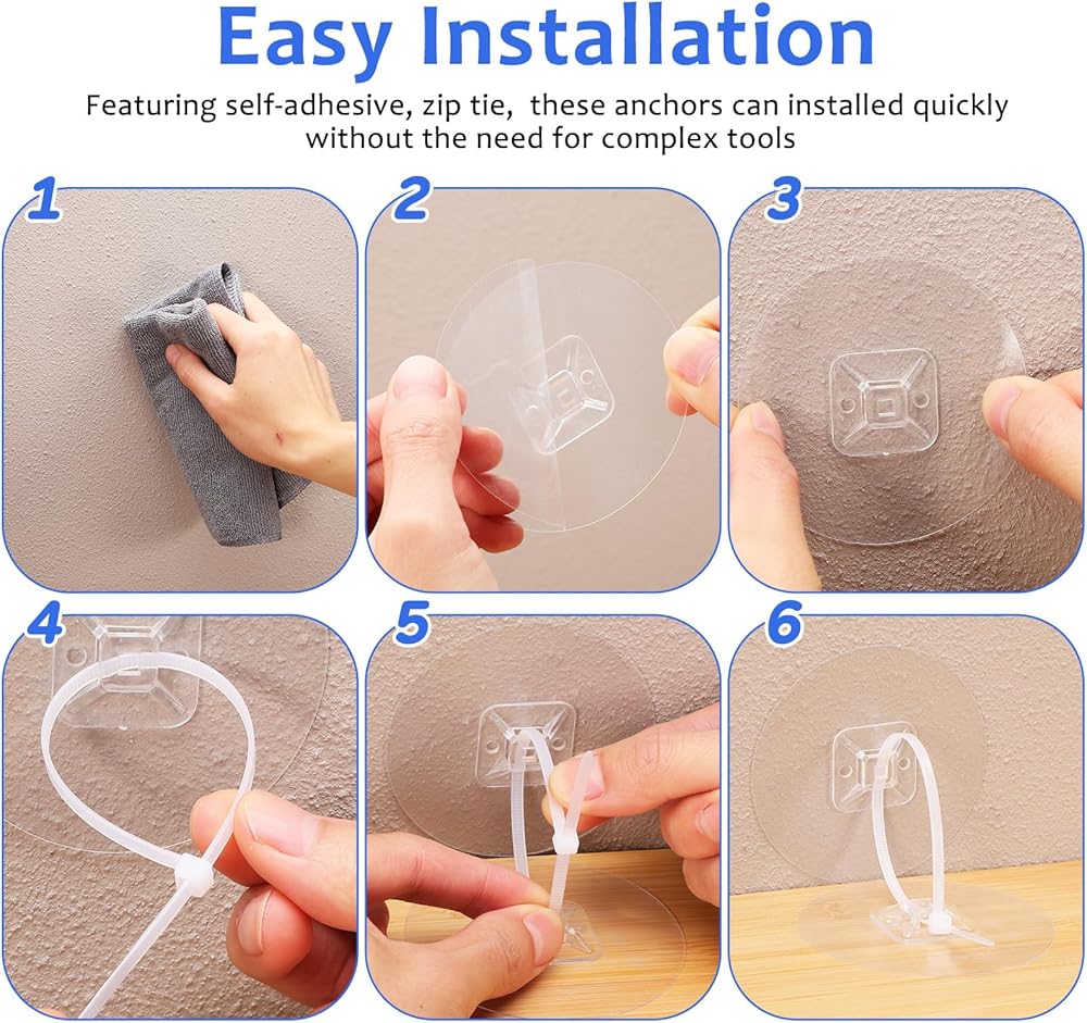 Furniture Anchors Baby Proofing Cabinets: Wall Anchors For Furniture,Dresser Wall Safety Anchor,Easy Installation: Featuring self-adhesive design and zip ties, these anchors can installed quickly without the need for complex tools