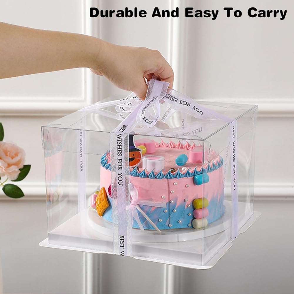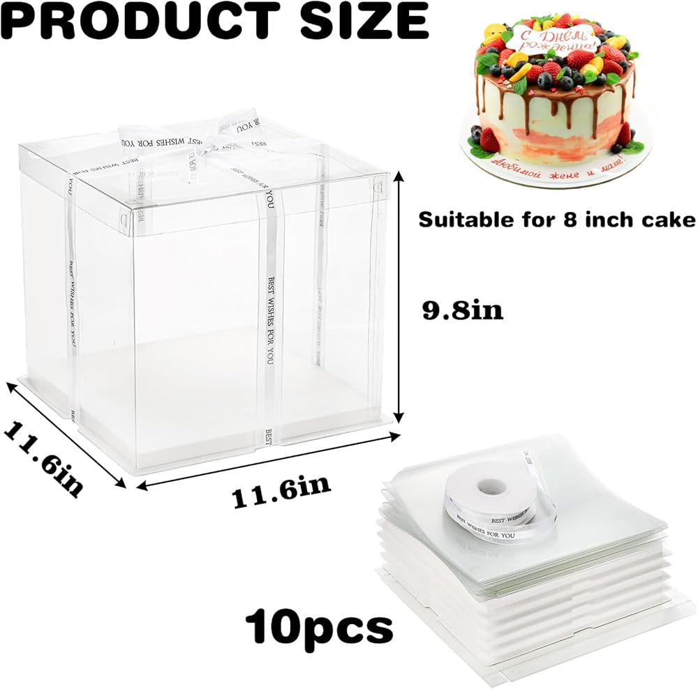 10 Pcs Large Cake Clear Box with Ribbon, 11.6x11.6x9.8 Inches Transparent Cake Carrier Box with Lids for Birthday Wedding Festival Party Anniversary