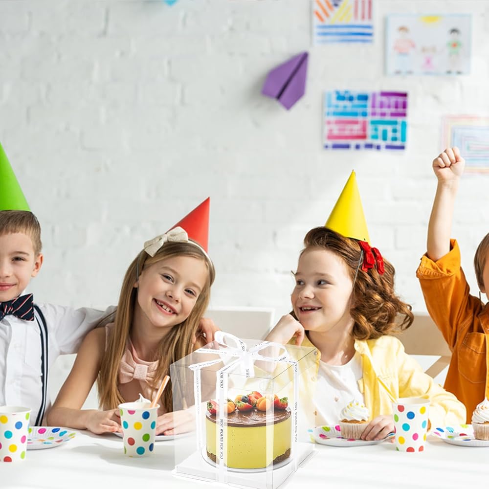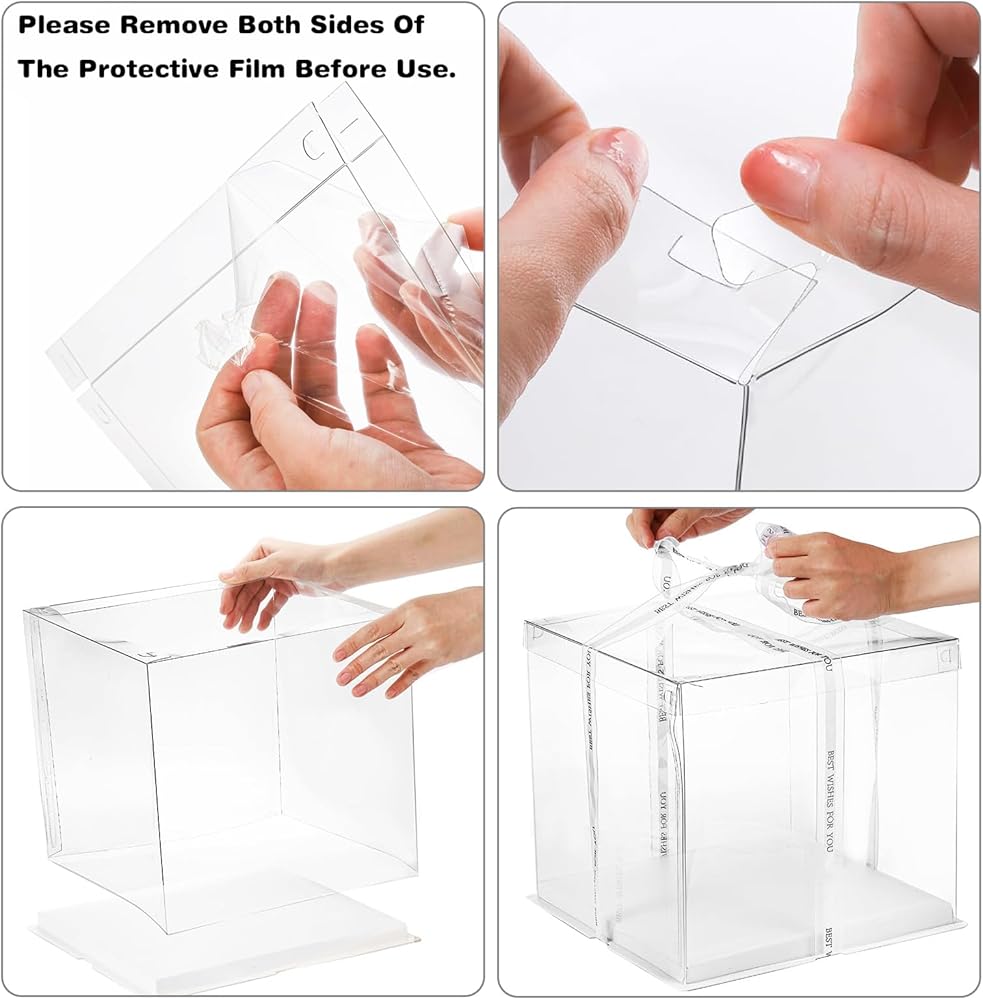 WIDE APPLICATION: The clear plastic gift box set can be used for various occasions, such as birthday, party, wedding, festival, anniversary and so on. In addition to being a cake box, it can also be used as pastry packaging, gift packaging, dust box.