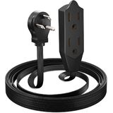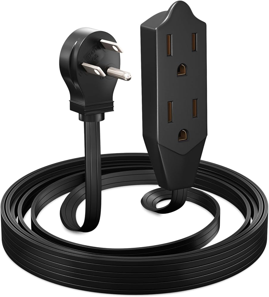 Maximm Angled Plug Extension Cord/Wire The flat extension cords are unique for their sleek and adaptable design. The 3 prong plug is designed to a 45 degree angle ensuring that it won't interfere with the other outlets, keeping it free for use with additional appliances or devices. Clutter ControlMaximm Solves those power problems with ease using the Flat Plug Angled Extension Cord. It has a space-saving design to eliminate bulky or awkward cords. Since it hugs the wall nicely and extends only a half an inch from the wall bending to a 90-degree angle - so it doesn't poke into adjacent objects - you can place your desk, couch, bookshelf etc, right up against the wall freeing up some space. Multiple UsesThe three outlet extension cord just makes it easy and convenient by providing you with up to 3 additional outlets for power distribution, letting you add another appliance or device right there without pulling out an extra cord and getting the same extension. The outlets are arranged with 3 plugs spaced conveniently on one side. Quality construction The extension cord is UL listed and adheres to industry standards for safety and quality assurance for an added peace of mind.Specifications Length: 3 Feet Connector 1: 1 NEMA 5-15P male Connector 2: 3 NEMA 5-15R female (sockets) Wire gauge: 16AWG Max. power rating: 1625 watts (13 amps at 125 volts)