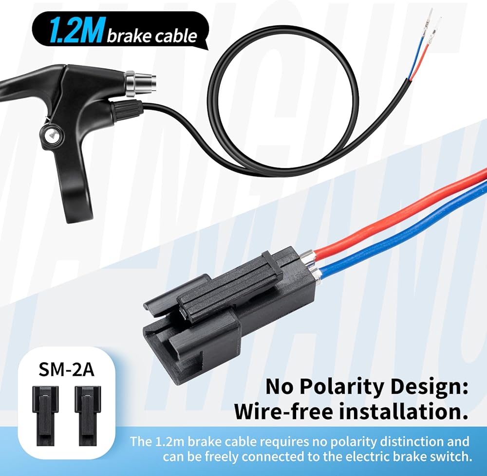 Purpose & Installation: The electric handlebar brake lever can cut off the sensor and cut off the power supply of the motor when the brake device is pressed. It ensures safety during your ride.The installation simply requires two cables to be connected and the handle to be fixed.