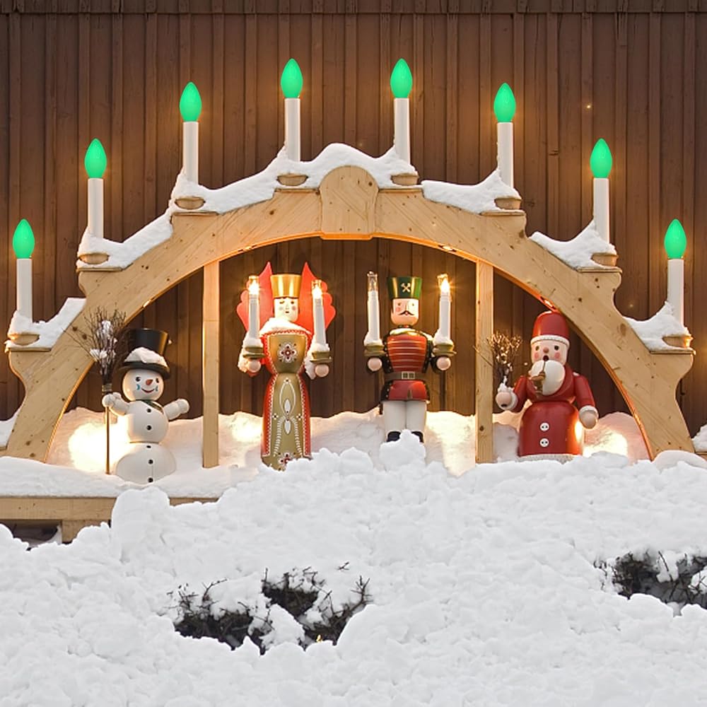 Outdoor Christmas theme bulb wide for Indoor lighting for home, commercial and residential, cool to touch, lasts for a long time use. LED Candelabra light bulbs perfect for indoor outdoor Christmas tree, bedroom, living room, roof line, holidays and winter Christmas Halloween Decorations.