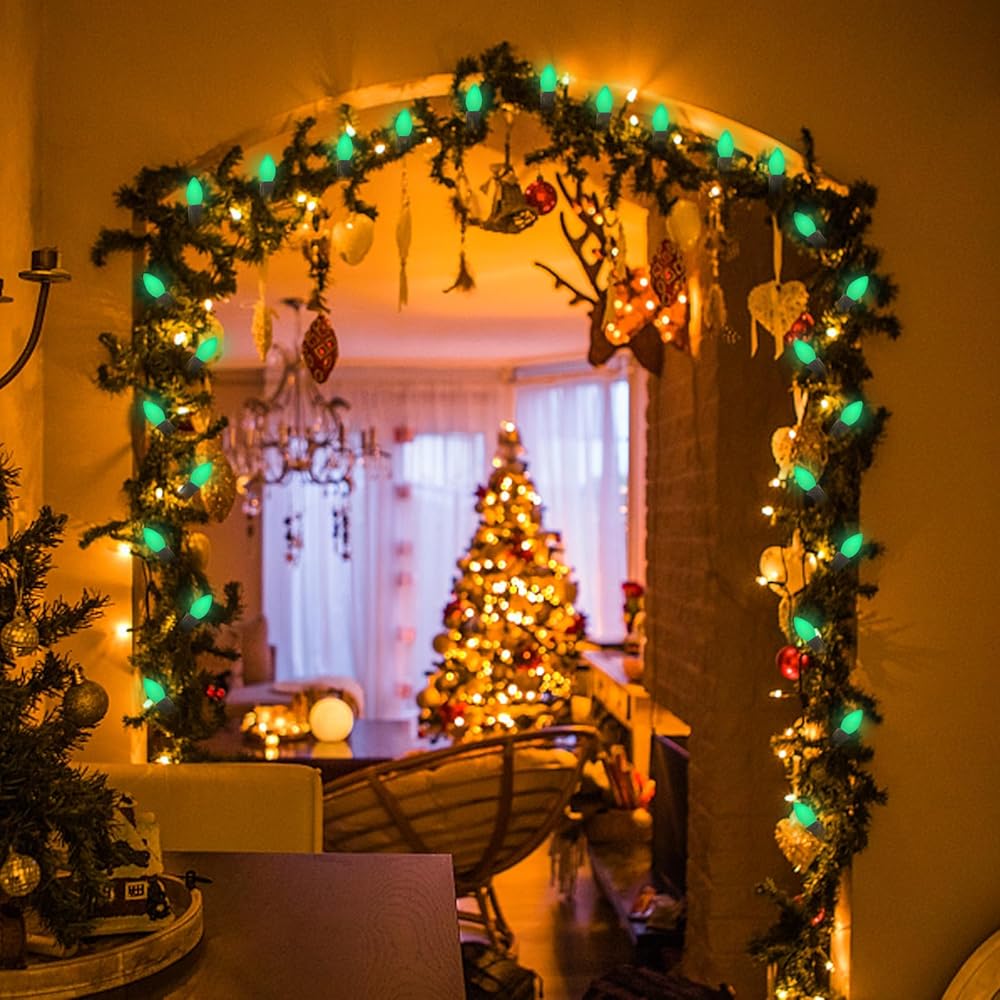 C7 LED Christmas light bulbs glow a 2700K Soft warm light to create a comfortable atmosphere for home. Set up your string lights in minutes. Always mount the string first before screwing in the light bulbs.
