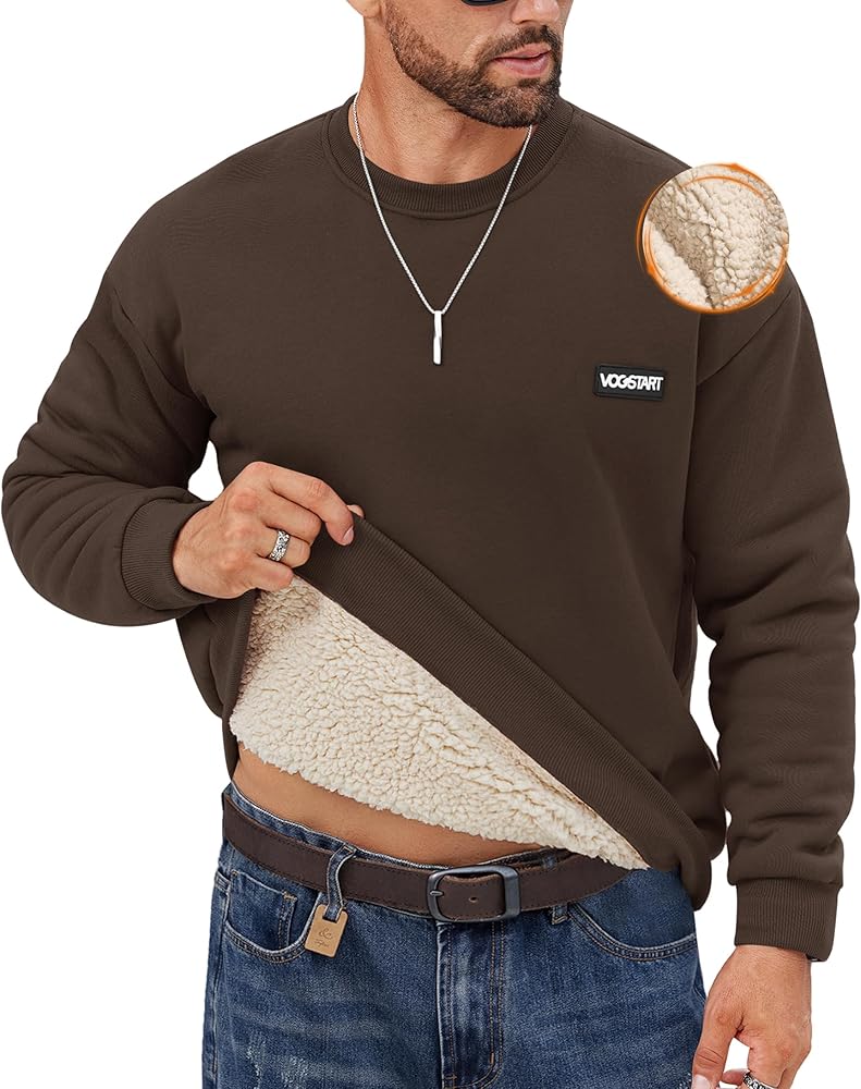 SHERPA SWEATSHIRT: Men's crewneck sherpa-lined sweatshirts are always a cold-weather favorite. Make a statement with the loose-fit design of this classic pullover, perfect to pair with denim jeans, cargo pants, and sweatpants.