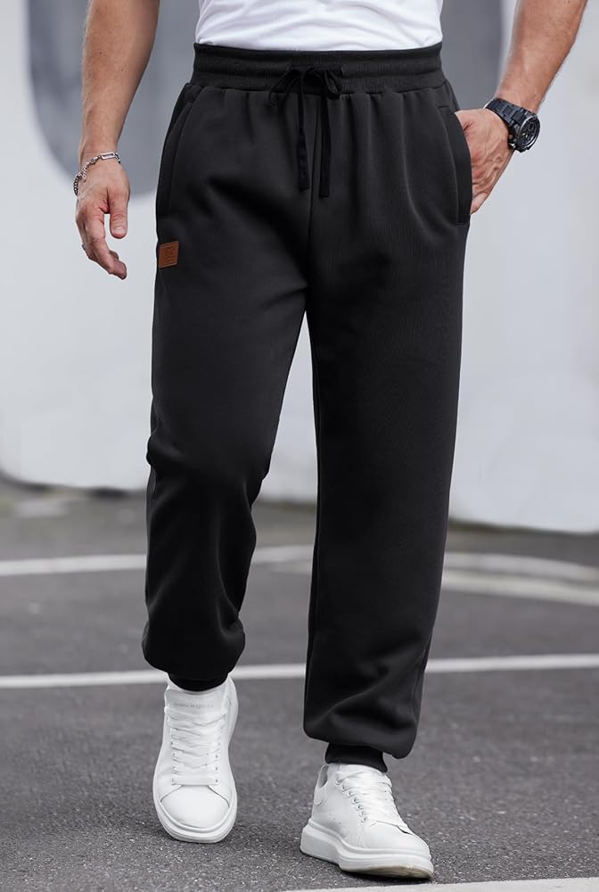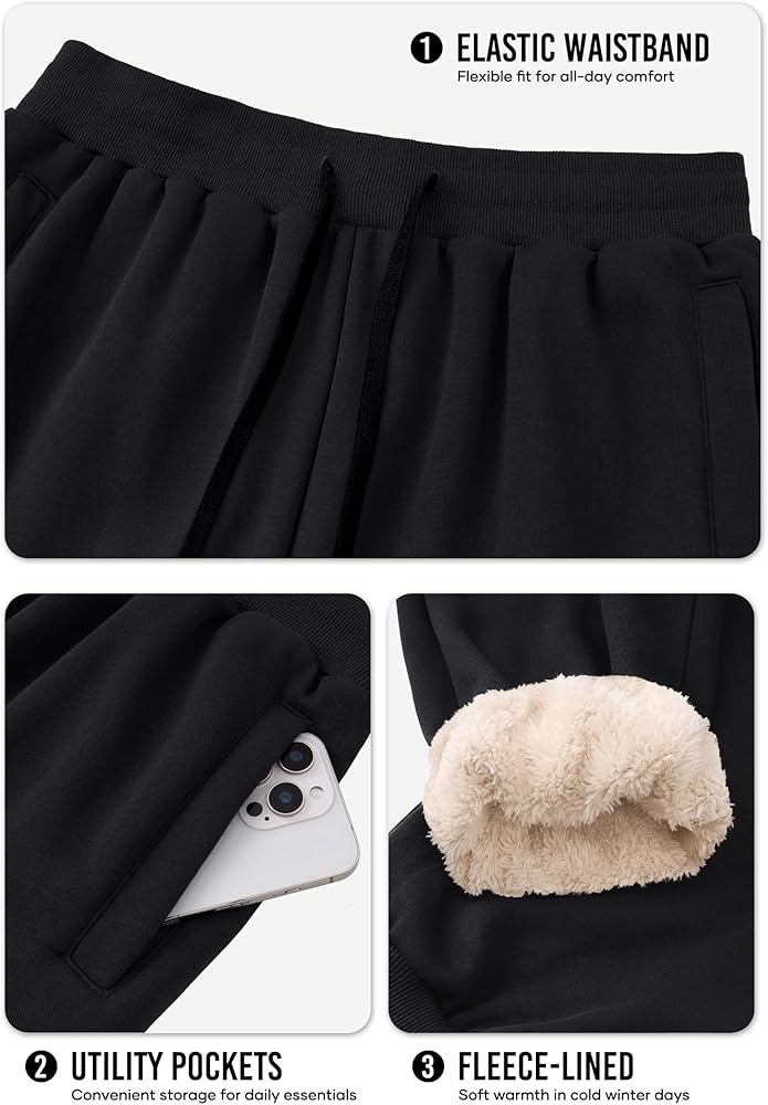 COMFY FABRIC: Our winter fleece-lined sweatpants with cotton fabric, are loose skin-friendly, and cozy to wear with stretch, making these track pants a staple for many outdoor events.
