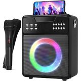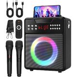 Karaoke Machine for Adults, Portable Bluetooth Speaker with 2 Wireless Microphones and Lights Show, Karaoke Speaker with Bass & Treble, Supports for TWS,USB,FM,REC,AUX in,TF Card for Party/Meeting