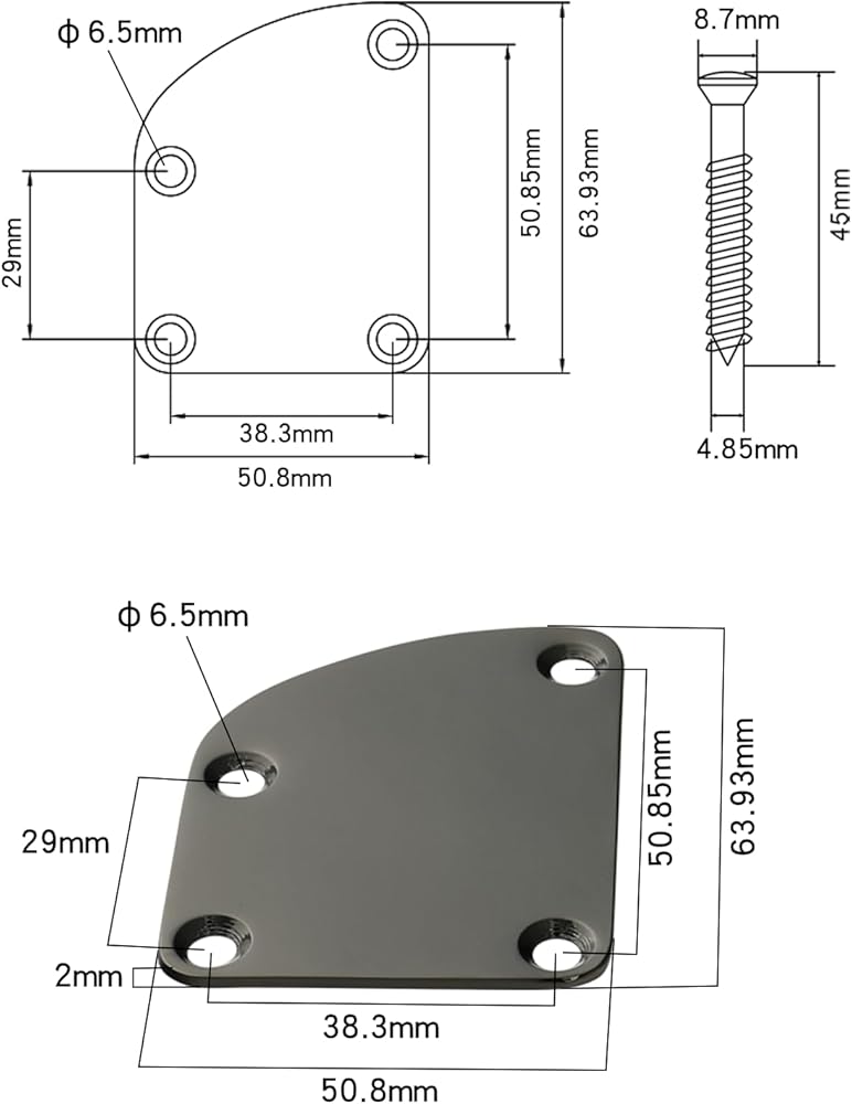 Wide application: The guitar neck plate can be used as an electric guitar replacement part for the neck joint plate of telecaster neck, tele neck, strat neck, stratocaster neck, and bass neck