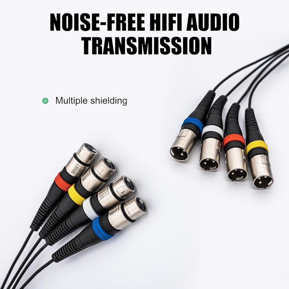 Coloured Bands: The XLR Male to Female cable has four different colour bands (red, blue, yellow, white) and have 4 number marks to help you easily identify or match other connectors. Our colorful rings have a professional design that makes it easy for you to plug and unplug it.