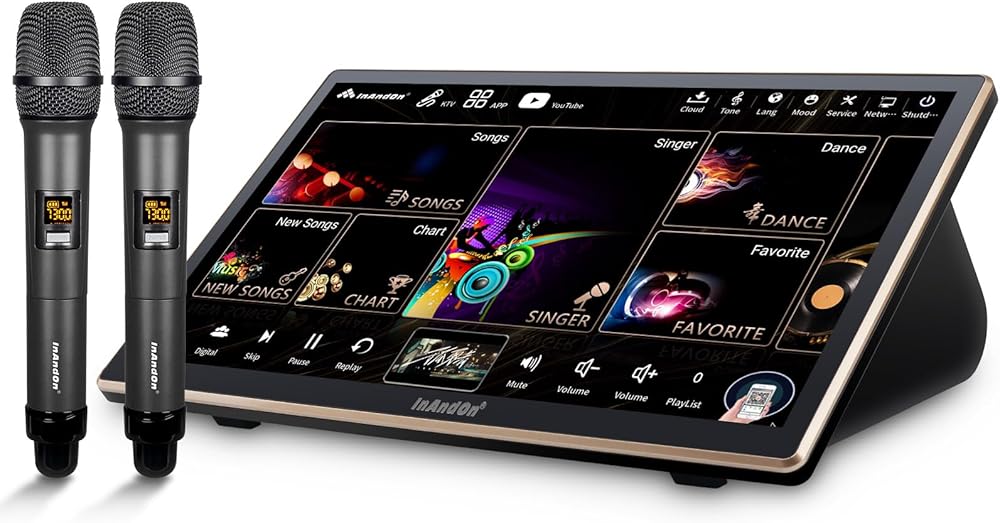 2026 InAndOn Chinese Karaoke System with Wireless Microphone, 18.5 inch Capacitive Touch Screen, 650K Cloud Song Library, YouTube Online Play, 4T
