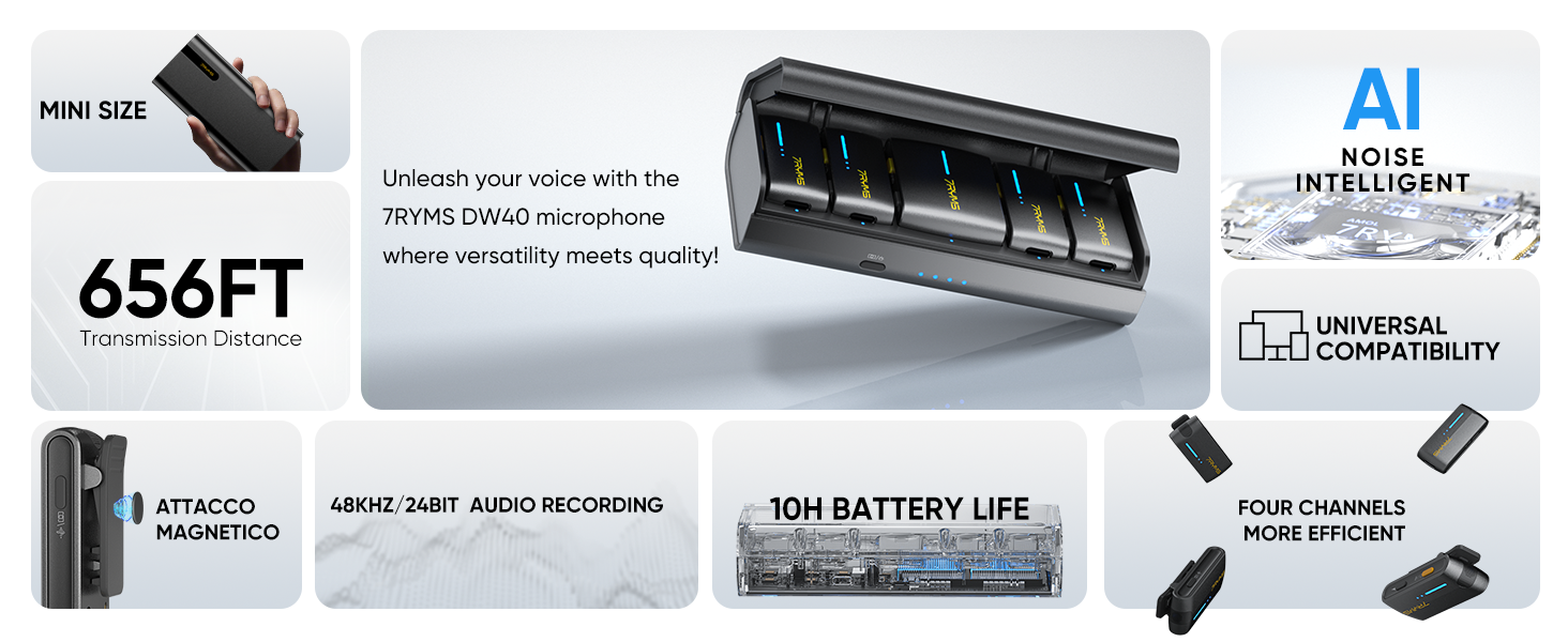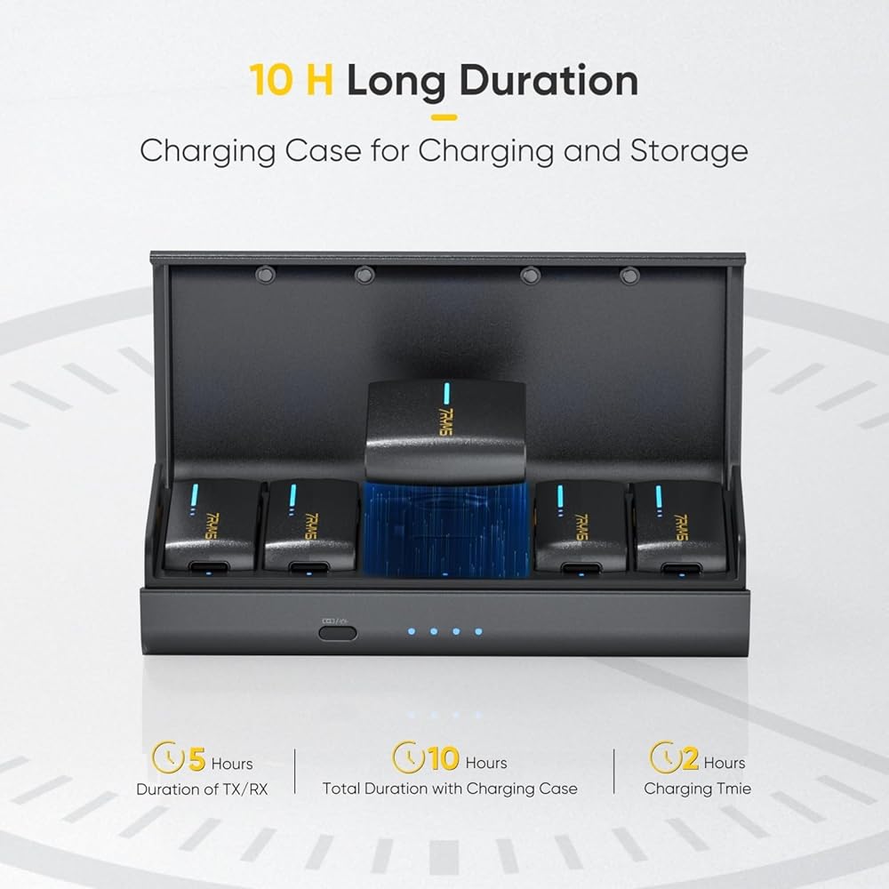 Portable Charging Case & 10-Hour Battery: The DW40's charging and storage case extends its battery life to 10 hours. Charge while recording via USB-C to ensure uninterrupted recordings for long sessions.