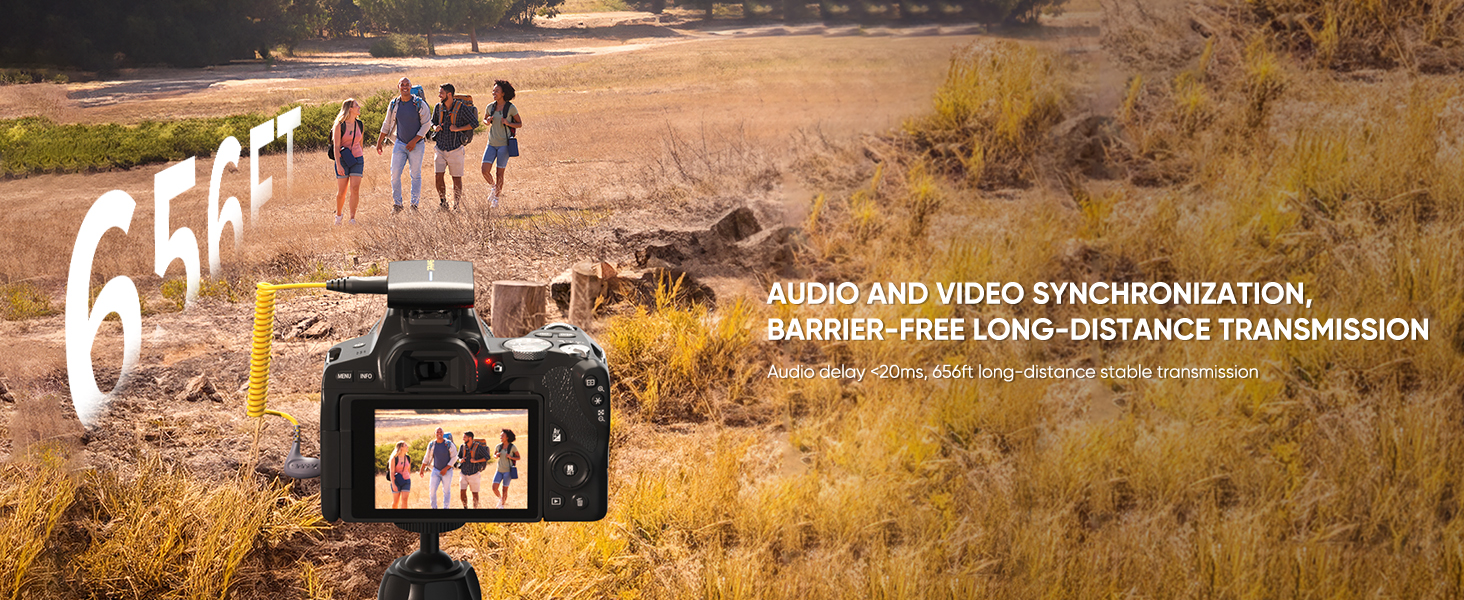 Low Latency & 200m Stable Range: With an ultra-low latency of under 20ms and a 200-meter range, you'll get smooth, stable recordings in open areas—ideal for outdoor events, travel vlogs, and more.