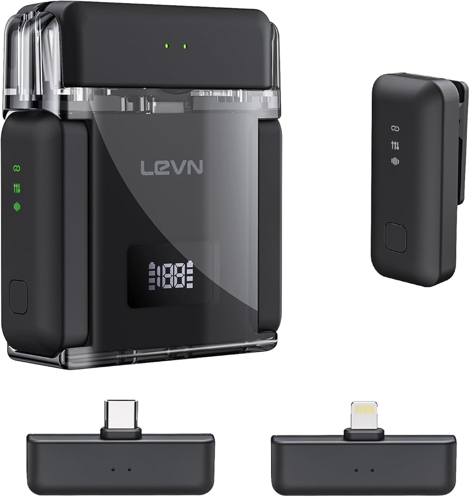 [Dual Device Capture Details]Embark on a professional recording journey with a wireless lavalier microphone. Featuring two receivers (Lightning/TYPE-C) and 2 mini mics, it enables the connection of two cellphones, unlocking the allure of multi-angle shooting. While exploring food, one device captures panoramic commentary while the other zooms in on details. Wireless microphones synchronize Hi-Fi audio, preserving every precious moment and enhancing the enjoyment of your video content