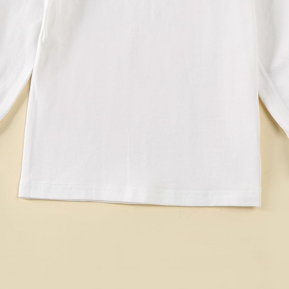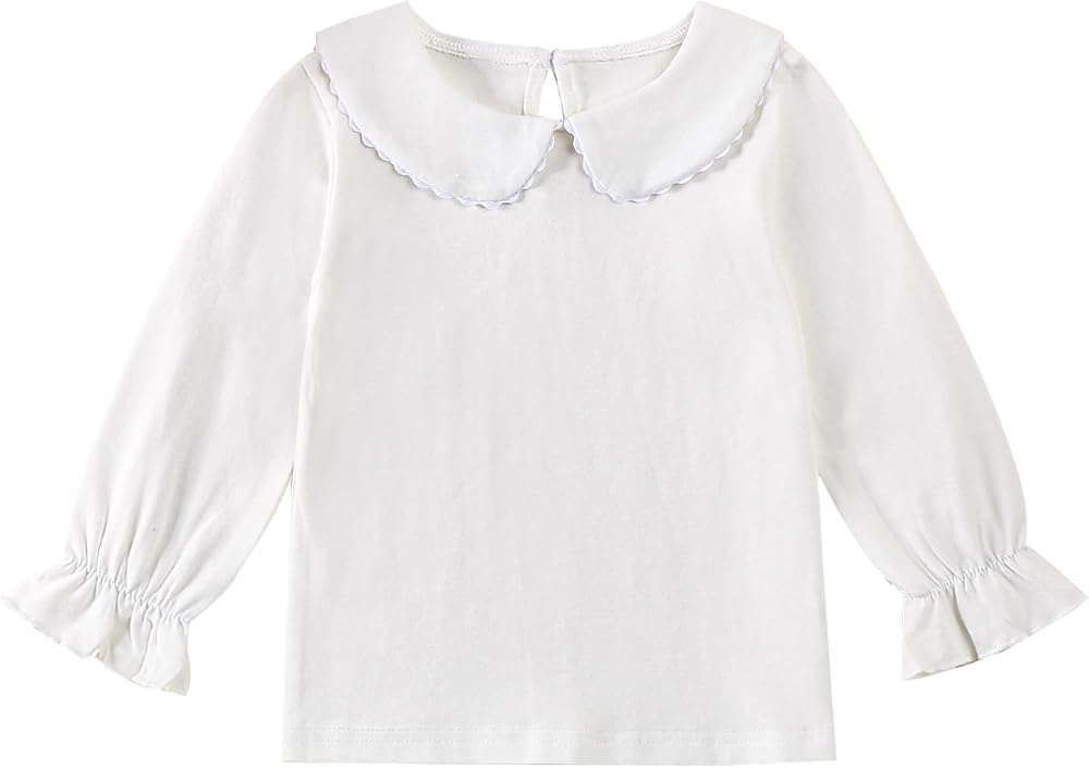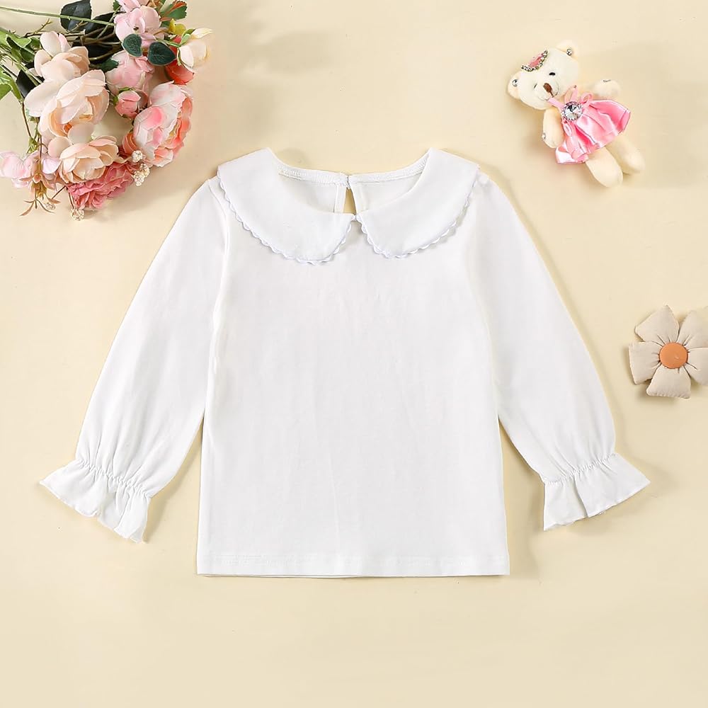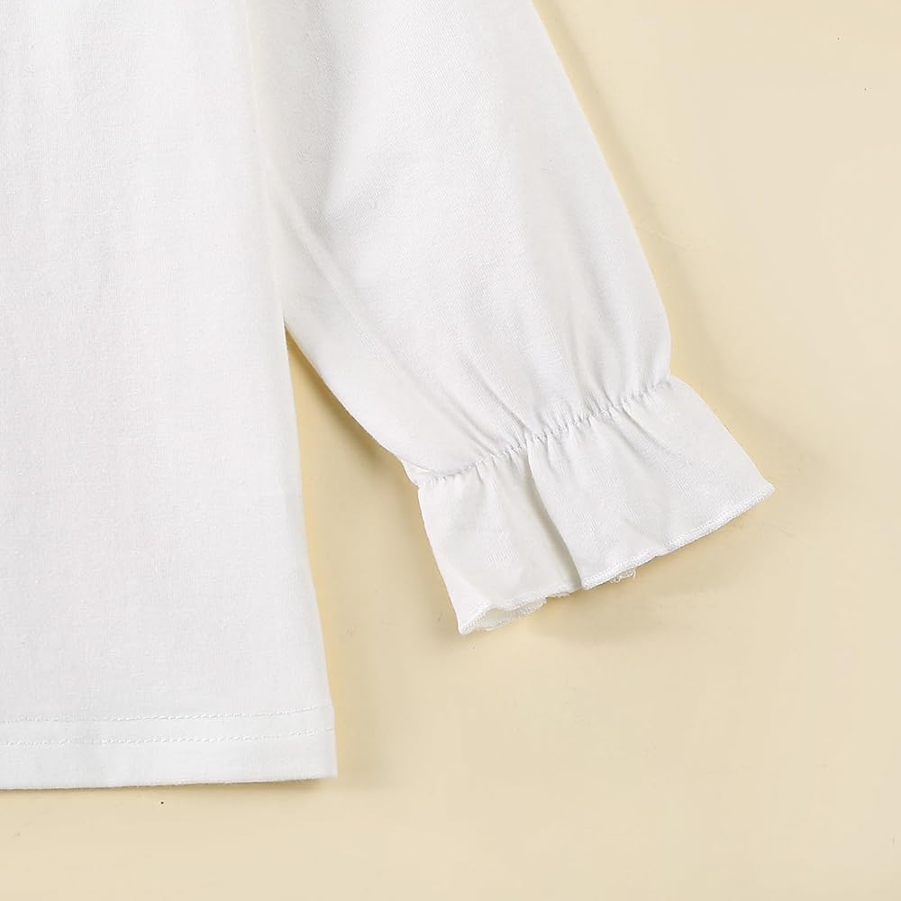 Toddler girl shirts:Toddler girl Ruffle long/Short sleeve t-shirt top blouse solid made of 5% spandex and95% polyester, Toddler girl long sleeve shirt are super soft and breathable, comfortable and stretchy to wear! Toddler shirt prefect for baby girls,spring,fall and winter wear.Toddler Baby Girl Solid Color T Shirt Kids Blouse Basic Plain Ruffle Top Cotton Casual Clothes is Great gift idea.