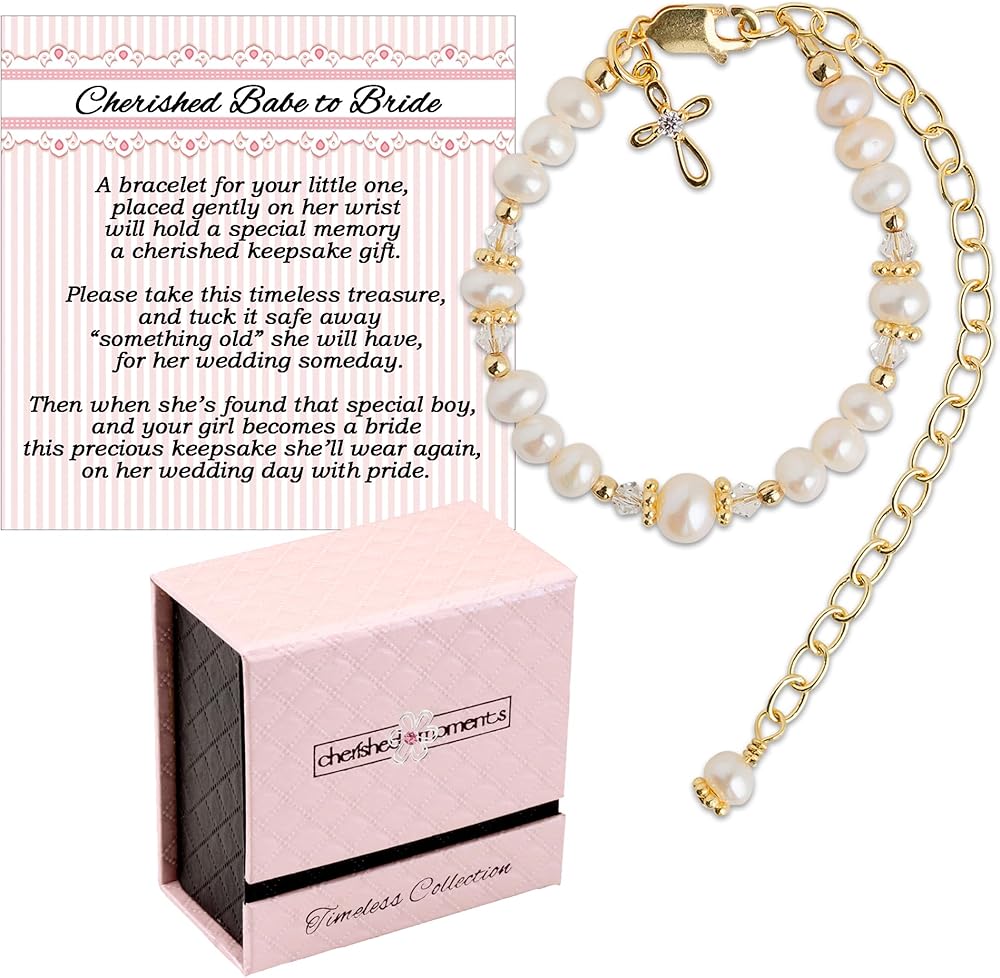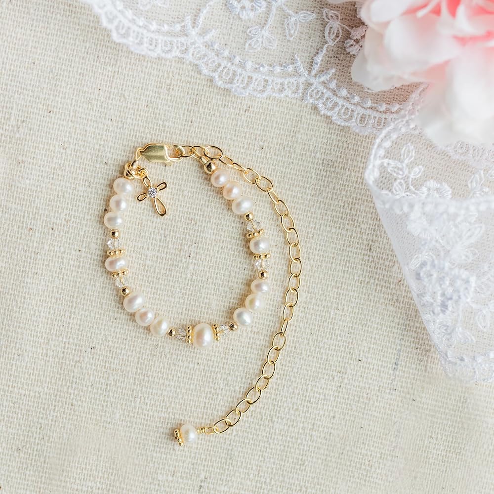 PREMIUM QUALITY – "Baby to Bride" Bracelets for girls are hand beaded in the USA by crafted jewelers and designed with 14k gold plating over .925 sterling silver. Created with the finest components including cultured pearls and high-end crystals making this a timeless keepsake piece she will treasure forever.