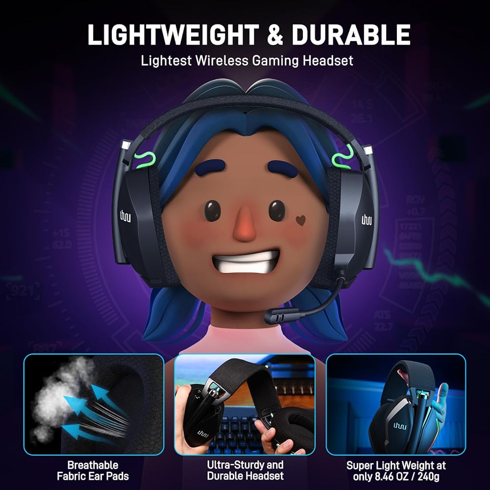 【Great Ergonomic Design】Comfortable and breathable fabric ear pads along with an ultra - sturdy and adjustable headband make this wireless headset a great option. This wireless gaming headset weighs only 8.46 oz (240 g), providing you with an ultimate comfortable experience even during long gaming sessions, whether you are using it as a PS5 headset or with other devices