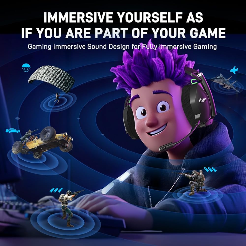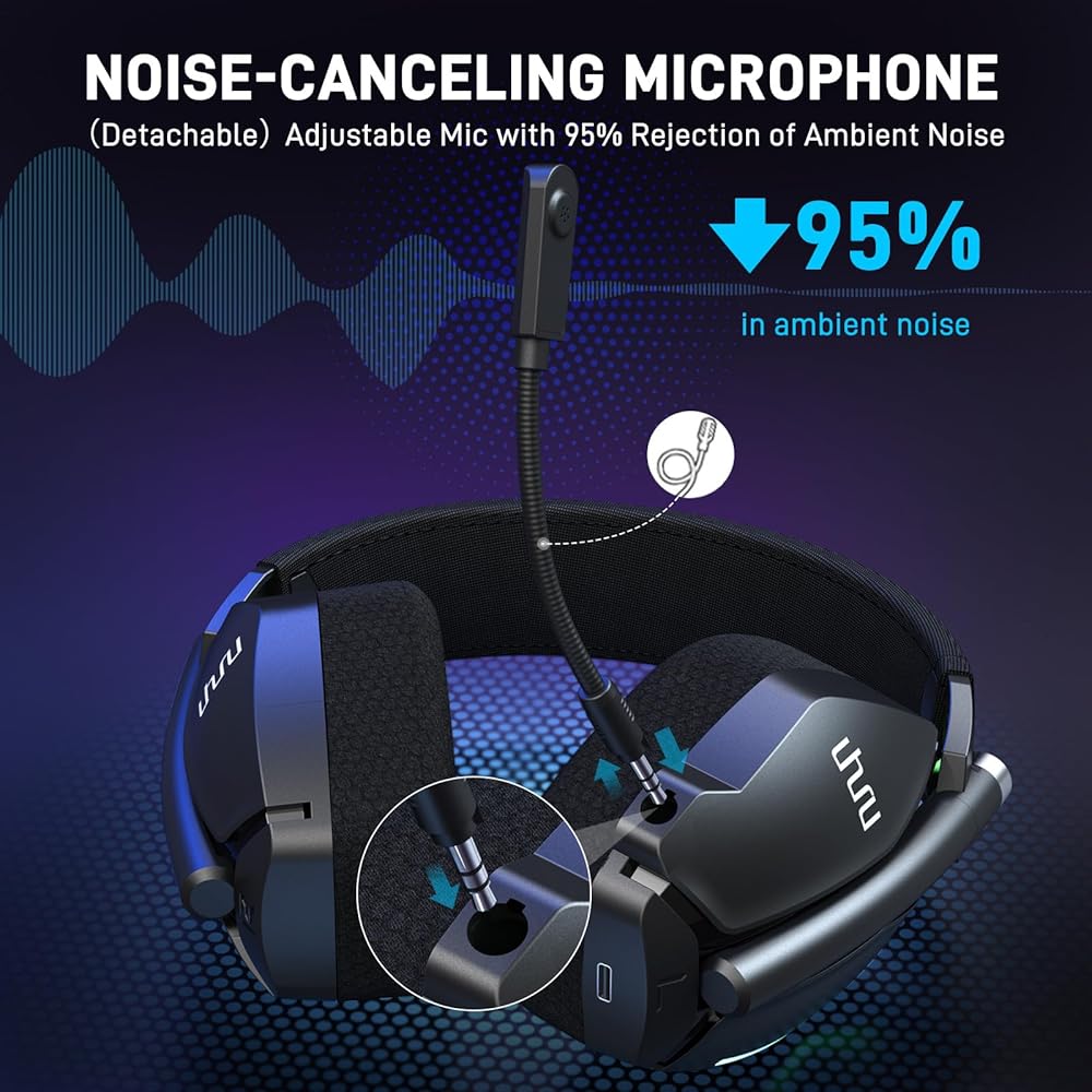 【Ultra-long Battery Life】Equipped with a 1200mah large battery, this gaming headphones can provide over 32 hours of continuous gaming. The type-c charging port allows for full charging in just 3 hours. Additionally, it features an adjustable on/off switch for RGB lighting effects