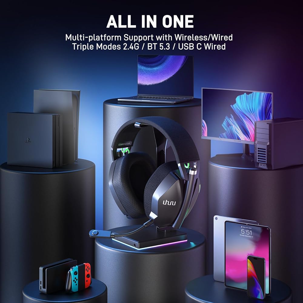 【Multi-Platform Compatibility】This wireless gaming headset is an ideal choice for gamers. It combines the features of wireless headphones and gaming headsets, especially designed for PS5 PS4, but also fully compatible with PCs, phones, and iPads
