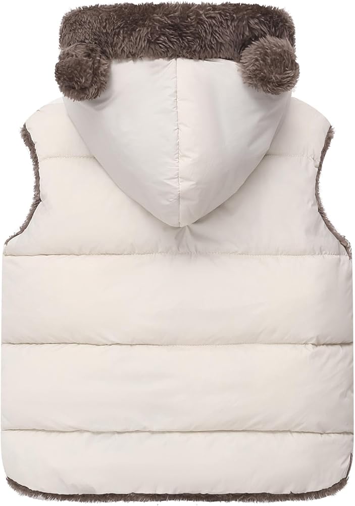Stylish Design: This sleeveless bubble jacket features a cute bear ear hoodie and zipper closure, adding a touch of charm to your child's outfit. The solid color design makes it easy to match with shirts, jeans, and sports shoes, ensuring a warm and fashionable appearance wherever they go.