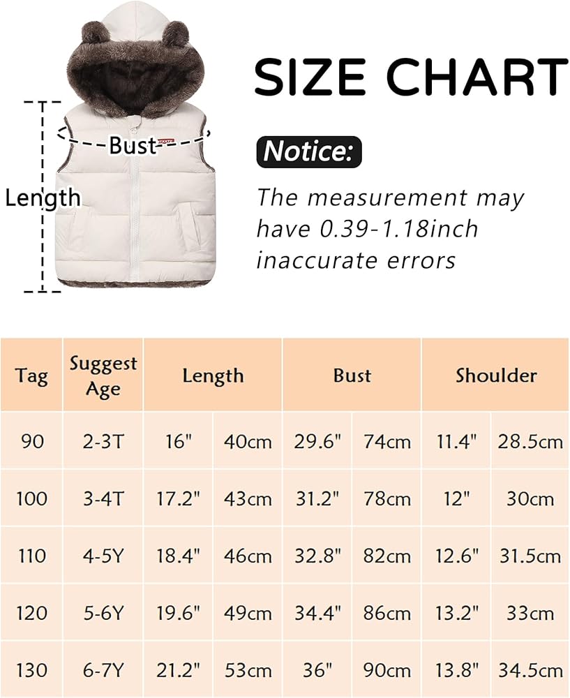 Versatile and Convenient: Suitable for both boys and girls aged 2-7 years old, our vest is perfect for various occasions such as daily wear, sports, outdoor activities, and school. The size chart provided ensures a perfect fit, allowing you to select the right size for your child before placing an order.
