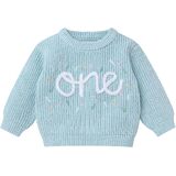 Baby Cable Knit Sweater for Fall Winter Birthday: The 1st birthday chunky sweater, long sleeve round neck knitted pullover sweater top, embroidered with the letter "One" or "Two" at front, great as celebrates baby 1st 2nd birthday. Cute winter baby sweater hand-crocheted sweater, wear trendy first birthday girl outfit on cold fall winter days and your baby will receive lots of compliments.
