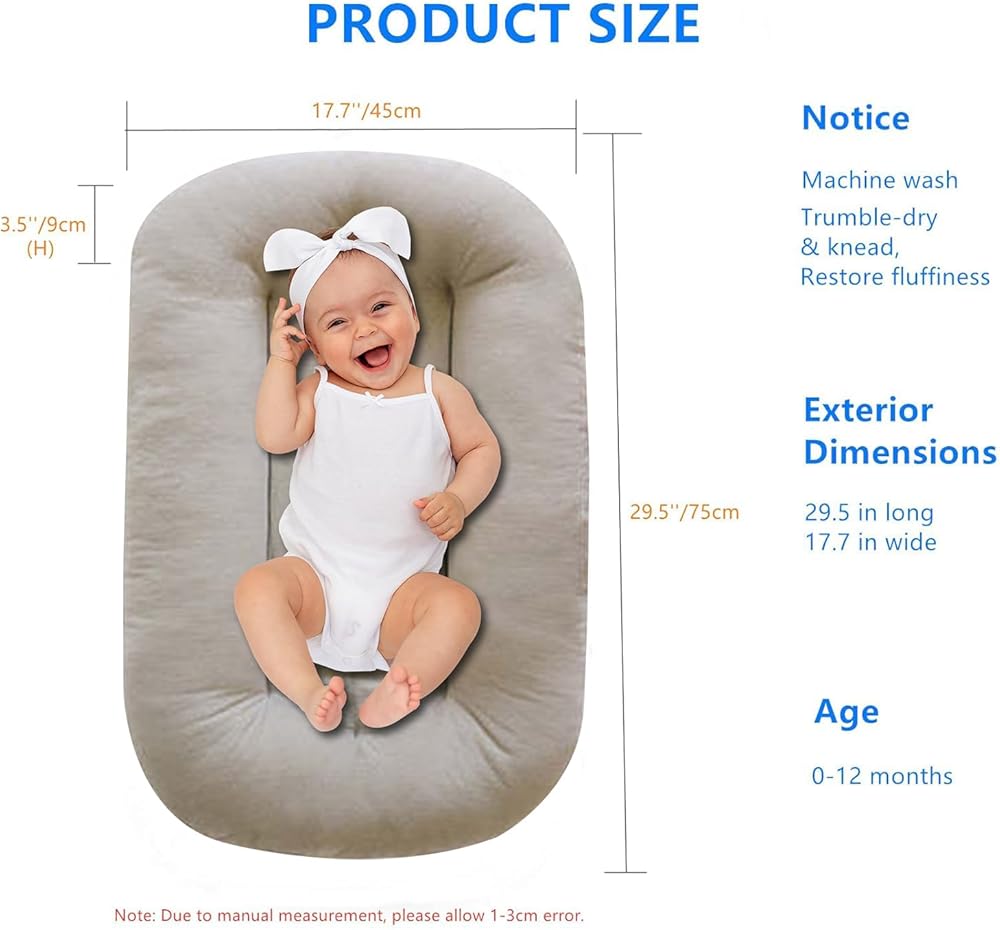 ❤️【Newborn Lounger Pillow】Baby lounger is covered with super soft and breathable pure cotton as the filling's material,no harmful substances will cause any harm to the baby. Caution: Always ensure adult supervision during use.