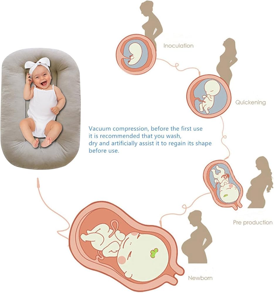 ❤️【Lounger Space】Newborn lounger size is about 29.5 x 17.7 inch,lengthen space to 12 Months and weighs only 2.65 pounds (1.2 kg),with vacuum packaging design that makes the newborn lounger a must-have for baby on the go.