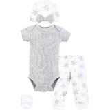 Complete Outfit: This 4-piece set includes a bodysuit, pant, cap, and socks, providing everything you need for a complete and adorable outfit.