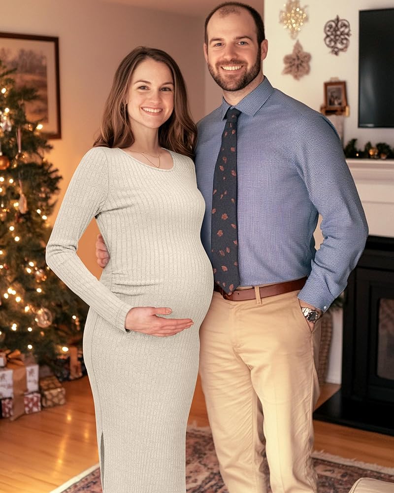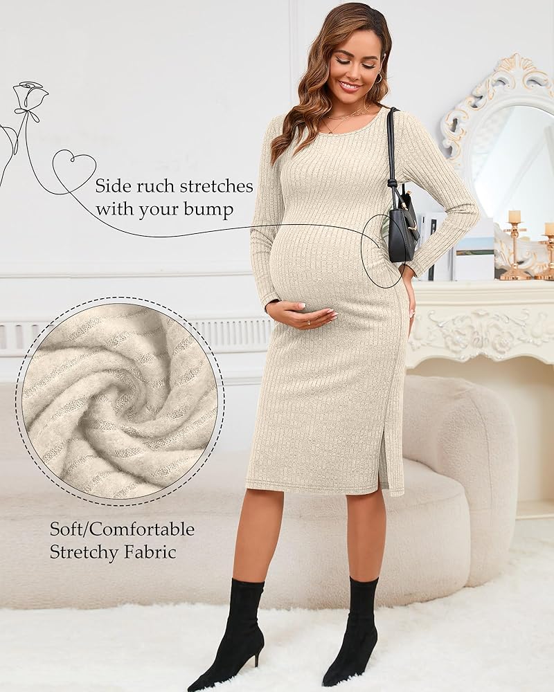 Ribbed Fabric: this maternity dress comprises 85% polyester, 11% rayon, and 4% spandex; It is soft and comfortable, and the ribbed knitting design adds texture to the long sleeve pregnancy dress, making it look more beautiful