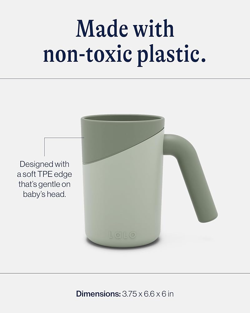 Lalo Bath Rinse Cup - Handle for Easy Grip, Tear-Free Baby Bathing, Flexible Lip, Non-Toxic, Soft Edge, Lightweight Bath Cup For Rinsing Hair and Body - Sage