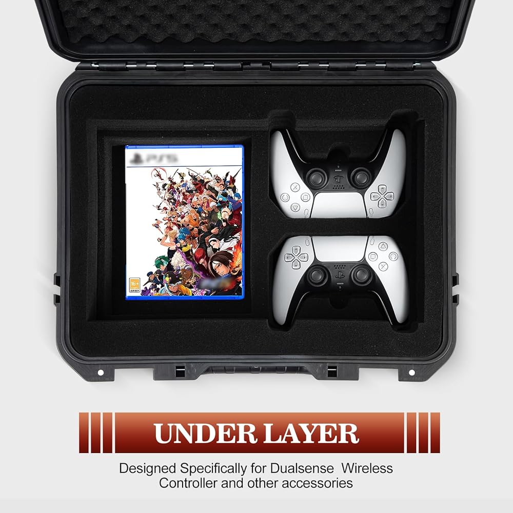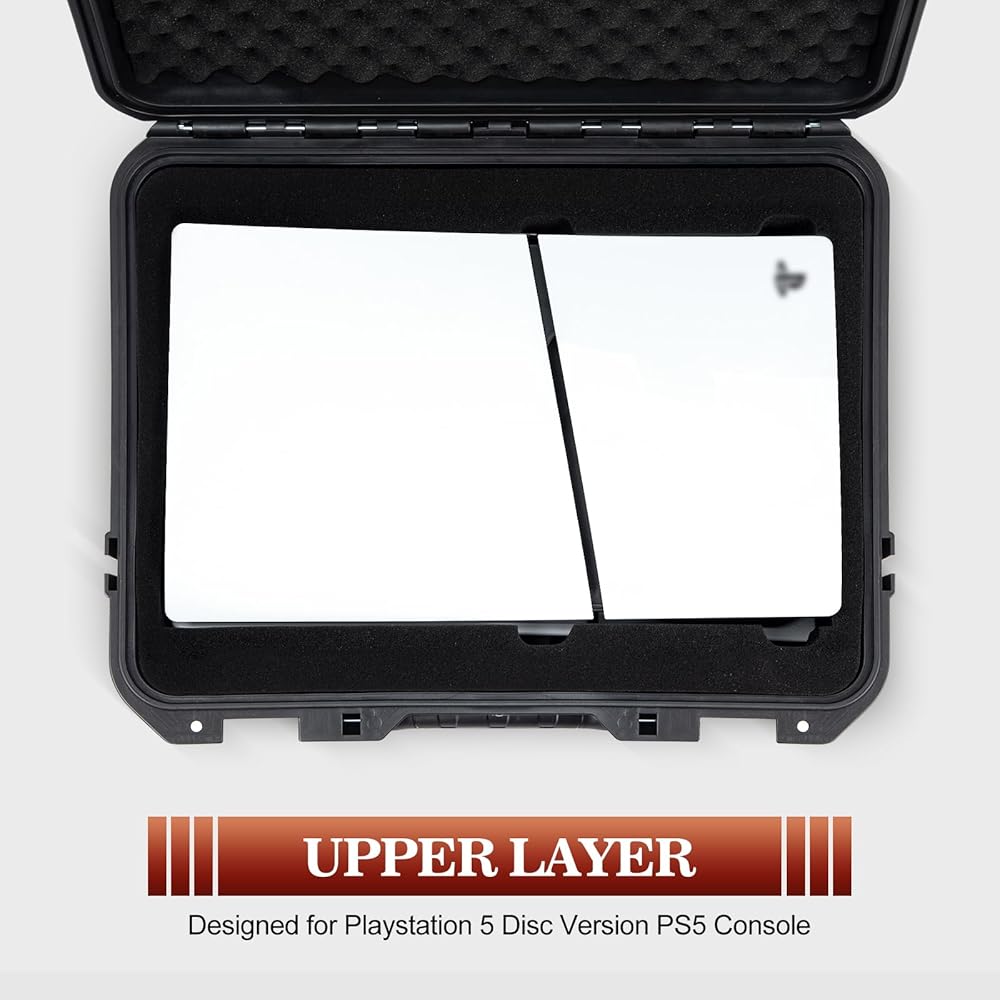 [FORMFITTING FOAM CUTOUTS]: The TANKENLID ps5 slim travel case features cutouts designed to fit your beloved console, two controllers, power and display cables and other accessories.