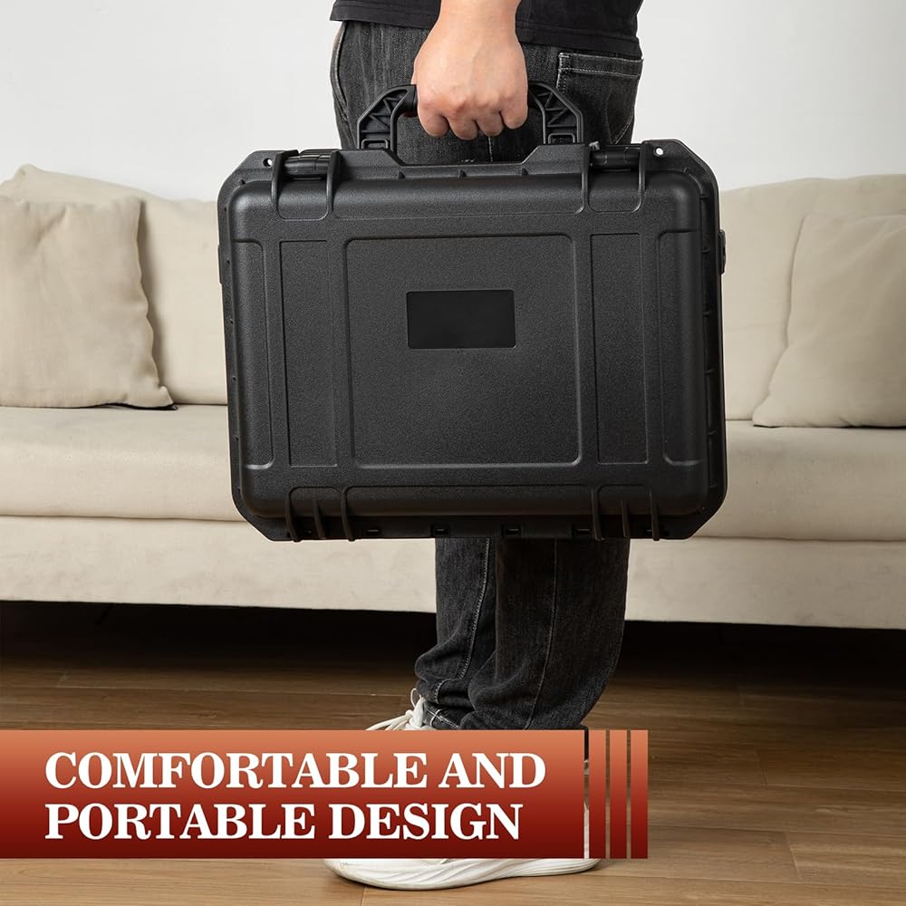 [AIRTIGHT & WATERPROOF CONSTRUCTION]: This travel case's gasket sealing lid and airtight pressure release valve can provide waterproof protection and prevent dust and moisture from entering the suitcase and damaging your electronic treasure.